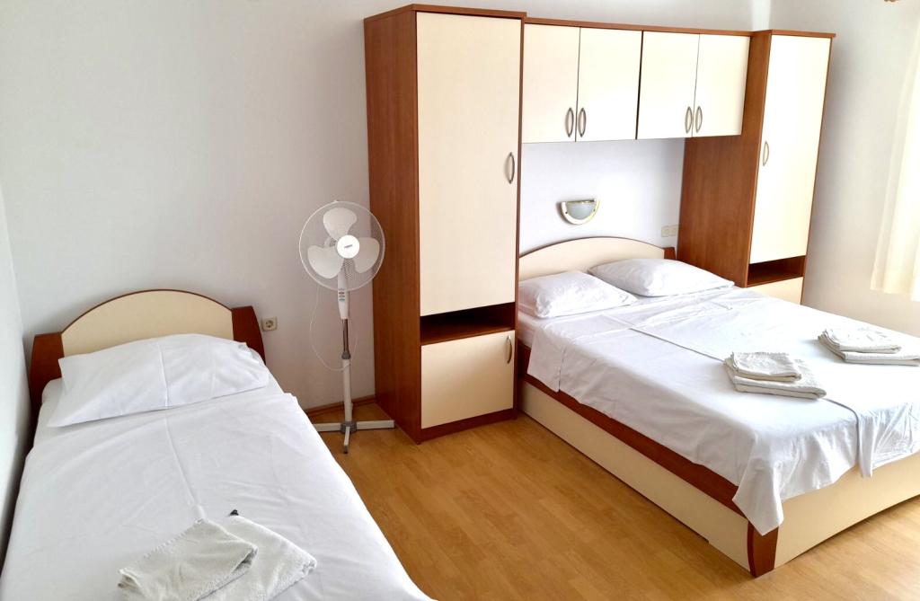 Apartmaji Petrinić se nahajajo 100 metrov od središča Loparja. Nudijo kakovostno nastanitev in prijetno bivanje za vašo družino in prijatelje. Nahajajo se na mirni lokaciji in vam omogočajo, da preživite počitnice bolj sproščeno in brezskrbno. V bližini so restavracija, velik trgovski center Konzum, pekarna, pošta, otroško igrišče, kavarna, lekarna, avtobusna postaja. Vsak apartma vključuje: dve veliki spalnici za 4 osebe plus dodatno ležišče (4 1), kopalnico, pralni stroj, kuhinjo, tv / sat, internet, klimo, balkon, parkirno mesto in vso potrebno opremo (posteljnina, brisače, aparat za kavo, kuhalnik vode, hladilnik, posoda). V bližini je tudi peščena plaža. Najbližja plaža je od naše hiše oddaljena 500 metrov, najbolj znana "Paradise Beach" pa je le 800 metrov stran. Upamo, da boste izbrali apartmaje Petrinić in se veselili vašega prihoda! Družina Petrinić