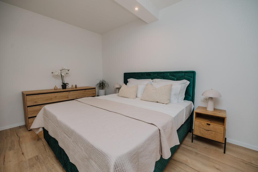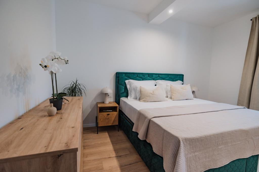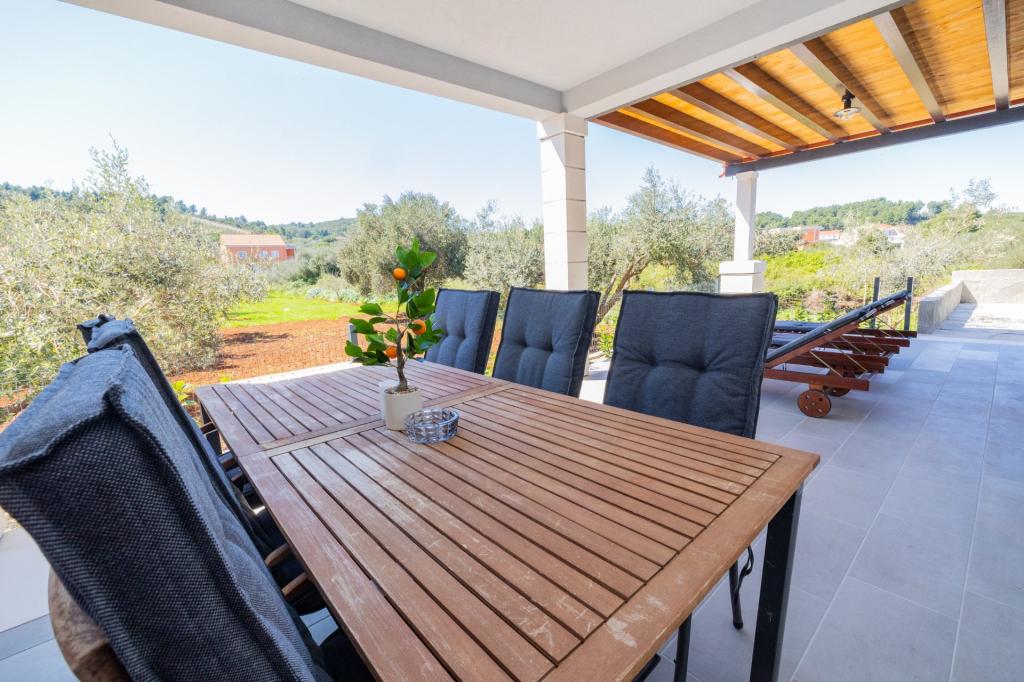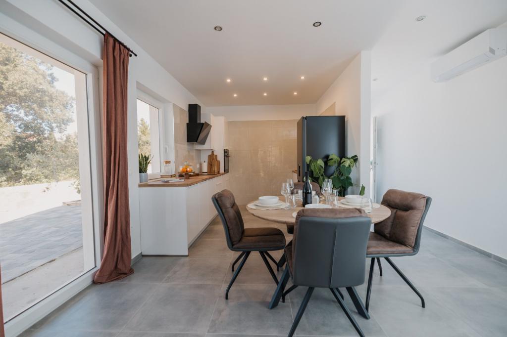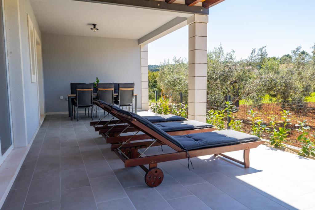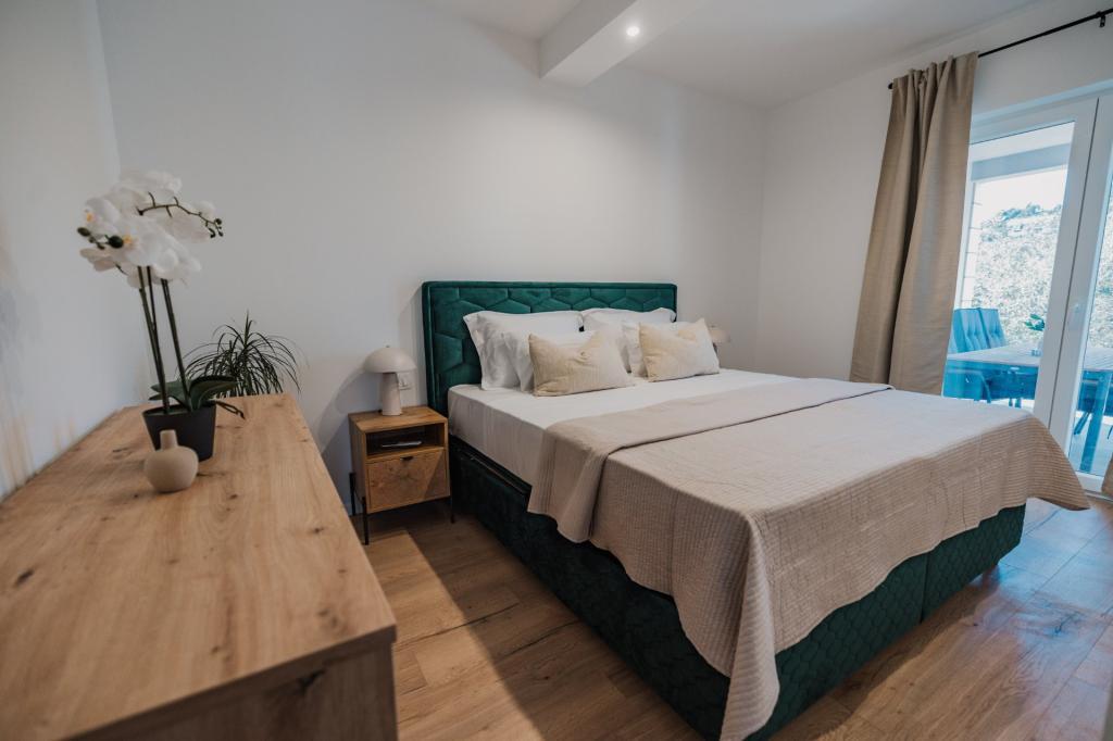 V Lumbardi na otoku Korčula se oddaja na novo prenovljen in moderno opremljen apartma, ki se nahaja v pristnem ambientu prostornega oljčnega nasada, ki gostom zagotavlja absolutno intimnost in mir. Apartma se razprostira na 75 kvadratnih metrih notranjega prostora z dvema spalnicama in dvema straniščema, poseben poudarek pa je na zunanjosti, ki vključuje veliko 35 kvadratnih metrov veliko teraso in 100 kvadratnih metrov velik vrt, idealen za sprostitev v samoti. Notranjost je popolnoma opremljena za udobno bivanje štirih oseb, vključno s pomivalnim strojem v kuhinji, pralnim strojem v kopalnici, MaxTV in hitrim 5G internetom, za družine z majhnimi otroki pa je na zahtevo na voljo otroška posteljica. Lokacija je popolna kombinacija zasebnosti in bližine vseh ugodnosti; prvi zaliv za kopanje je oddaljen le 200 metrov, središče mesta 800 metrov, medtem ko so znane velike peščene plaže oddaljene približno 2 kilometra. Gostom je na voljo zasebno parkirišče v stavbi.