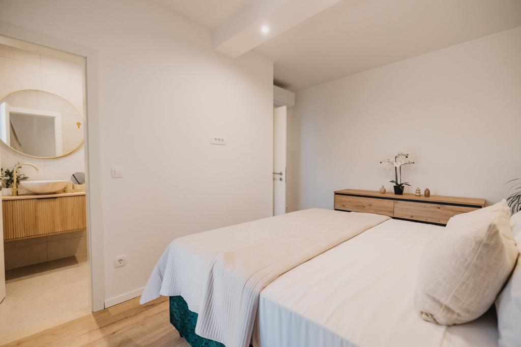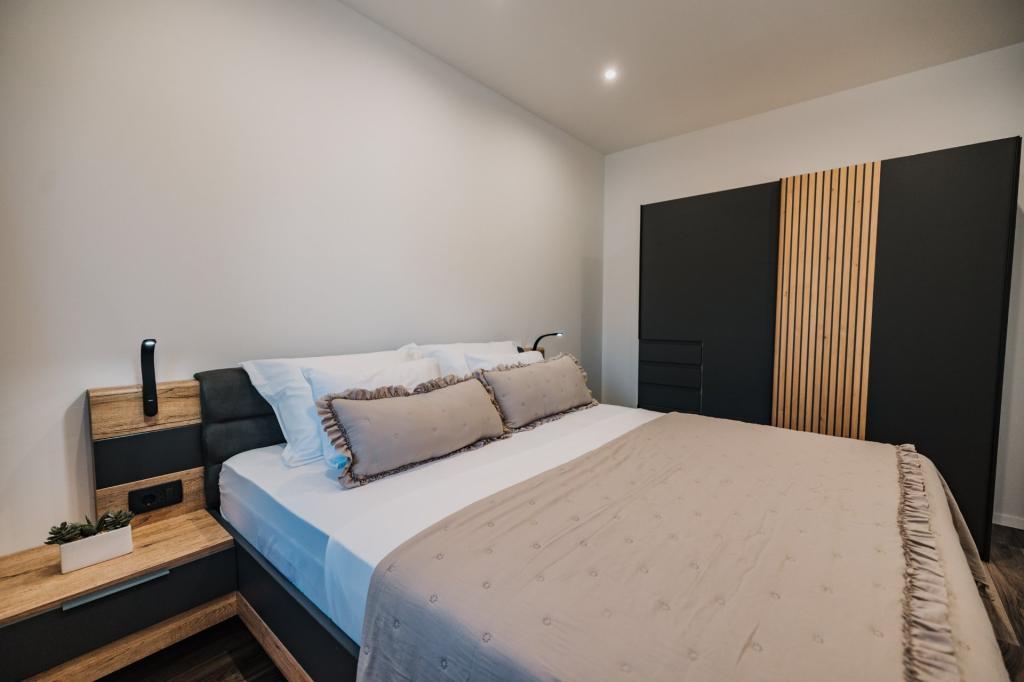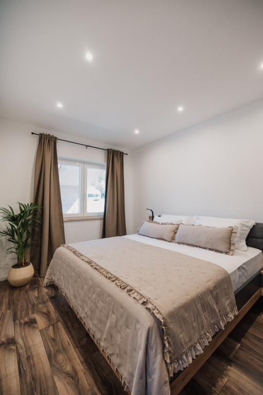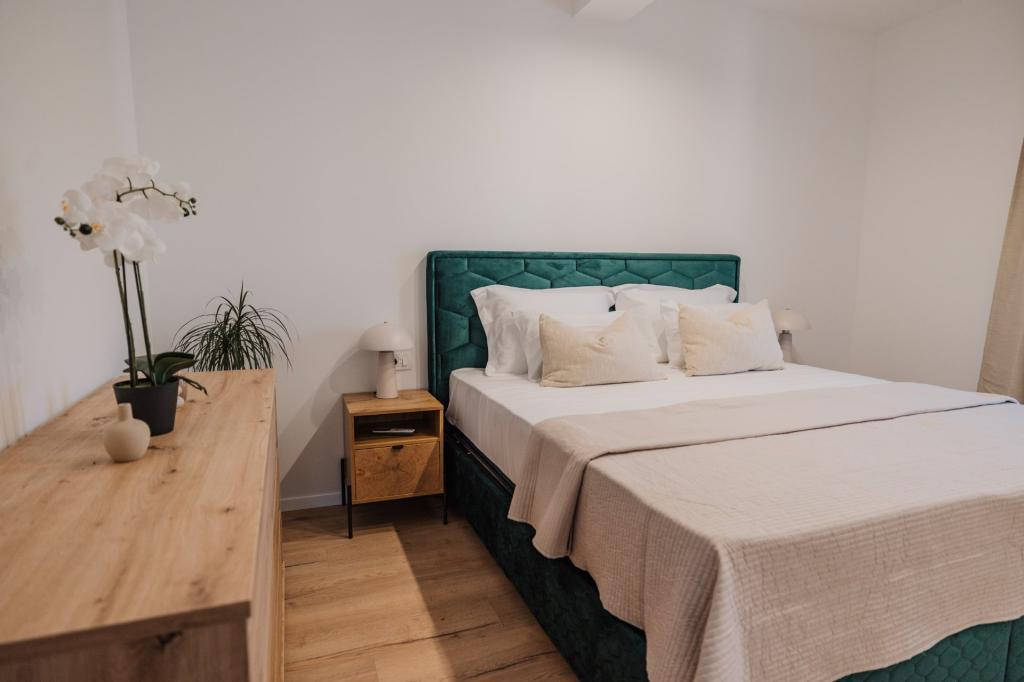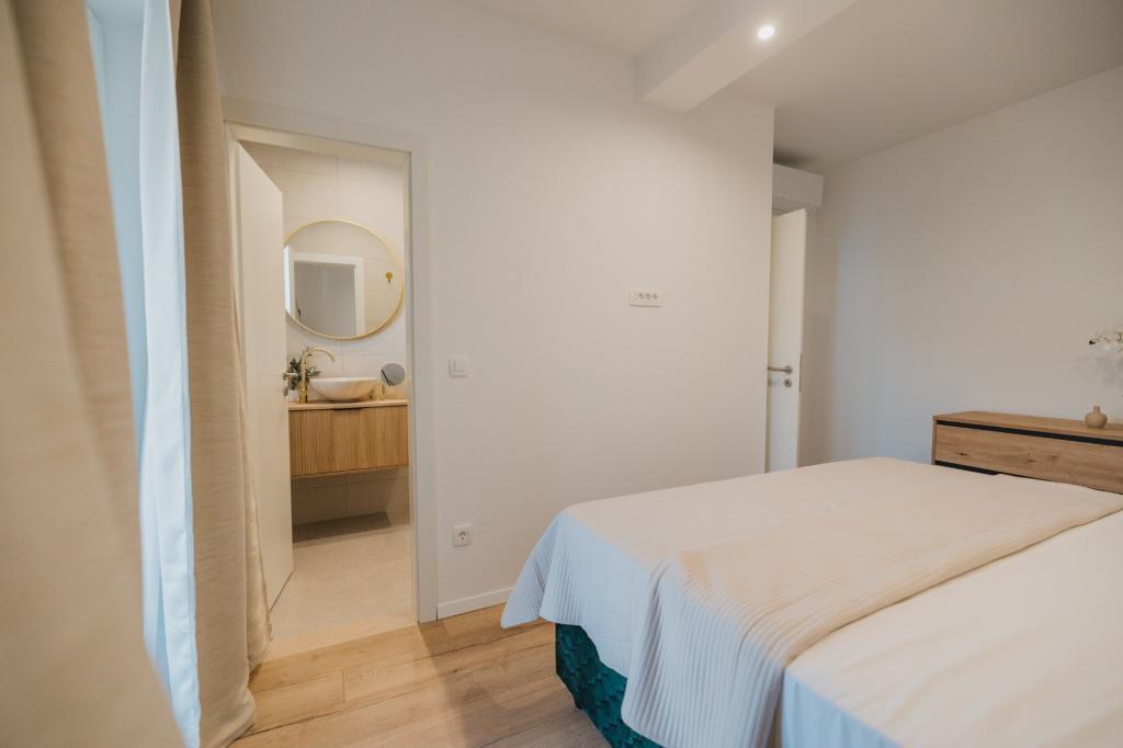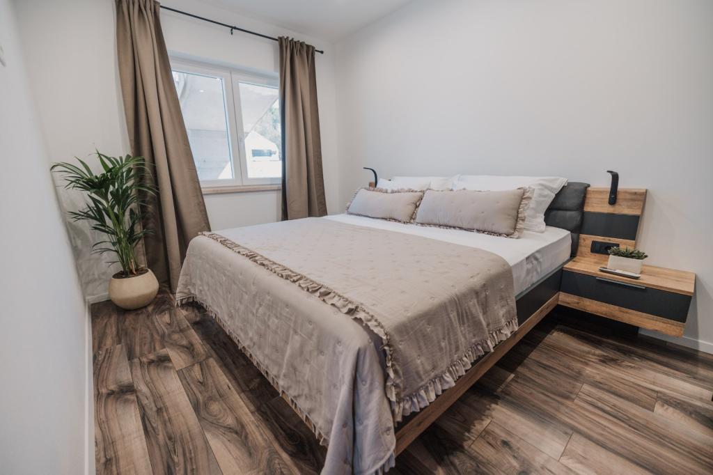 V Lumbardi na otoku Korčula se oddaja na novo prenovljen in moderno opremljen apartma, ki se nahaja v pristnem ambientu prostornega oljčnega nasada, ki gostom zagotavlja absolutno intimnost in mir. Apartma se razprostira na 75 kvadratnih metrih notranjega prostora z dvema spalnicama in dvema straniščema, poseben poudarek pa je na zunanjosti, ki vključuje veliko 35 kvadratnih metrov veliko teraso in 100 kvadratnih metrov velik vrt, idealen za sprostitev v samoti. Notranjost je popolnoma opremljena za udobno bivanje štirih oseb, vključno s pomivalnim strojem v kuhinji, pralnim strojem v kopalnici, MaxTV in hitrim 5G internetom, za družine z majhnimi otroki pa je na zahtevo na voljo otroška posteljica. Lokacija je popolna kombinacija zasebnosti in bližine vseh ugodnosti; prvi zaliv za kopanje je oddaljen le 200 metrov, središče mesta 800 metrov, medtem ko so znane velike peščene plaže oddaljene približno 2 kilometra. Gostom je na voljo zasebno parkirišče v stavbi.