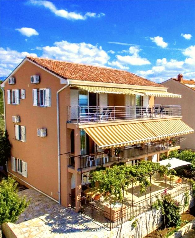 Apartmaji se nahajajo tik ob morju s pogledom na otoka Cres in Lošinj, idealni za miren in sproščujoč dopust brez večjega hrupa in vrveža. Popolnoma so opremljeni. Center mesta je oddaljen le 300 metrov, kjer najdete trgovino, več restavracij, kavarno in trgovino s sadjem in zelenjavo, bankomat. Peščena plaža za otroke je oddaljena 200 metrov. Pred hišo je majhna zelena oaza z bogatim zelenjavnim vrtom, kjer se lahko gostje sami oskrbijo. Apartmaji imajo lastno parkirišče, zunanjo teraso za žar v pritličju, ki jo lahko uporabljate, in če želite nekaj več, so vam gostitelji pripravljeni urediti lastnega kuharja. Hrup ni dovoljen pred 9. uro zjutraj in po 23. uri. Lun, ki se nahaja na severnem delu otoka Pag, bogatega s tisočletnimi oljkami, je edinstveno območje v tem delu Sredozemlja. Na površini 400 hektarjev se razprostira več kot 80.000 oljk. Lun se nahaja v bližini Novalje, v bližini pa so tudi otoki Rab, Lošinj, Cres, Silba in 5 narodnih parkov. Dnevna izletniška ladijska povezava z Rabom.