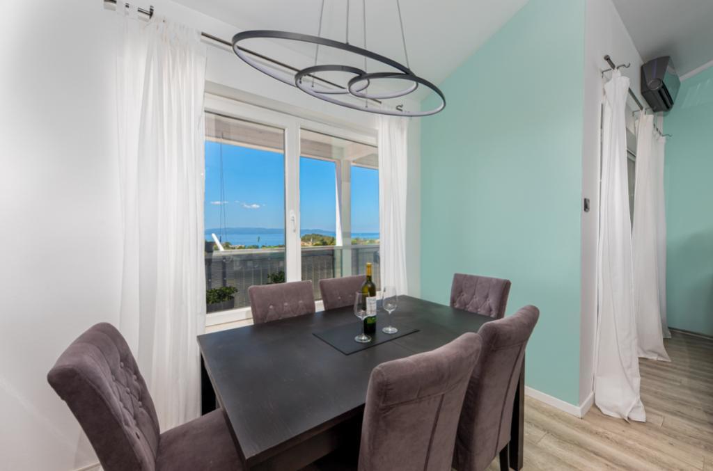 V tem prostornem apartmaju s 3 spalnicami, 1,5 kopalnicami in dvema balkonoma s čudovitim pogledom na morje vas čakajo sanjske počitnice. Uživajte v nepozabnih razgledih na Jadransko morje in Biokovo, le 10 minut hoje od plaže in 15 minut od slikovitega središča Makarske. Popolna lokacija - blizu sprehajališč, trgovin in restavracij - vam ponuja idealno kombinacijo sprostitve in pustolovščine. Apartma se nahaja v 4. nadstropju stavbe brez dvigala, v mirnem predelu nad mestom, kjer vas čakata tišina in osupljivi razgledi.