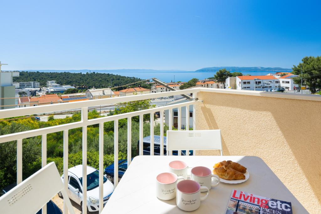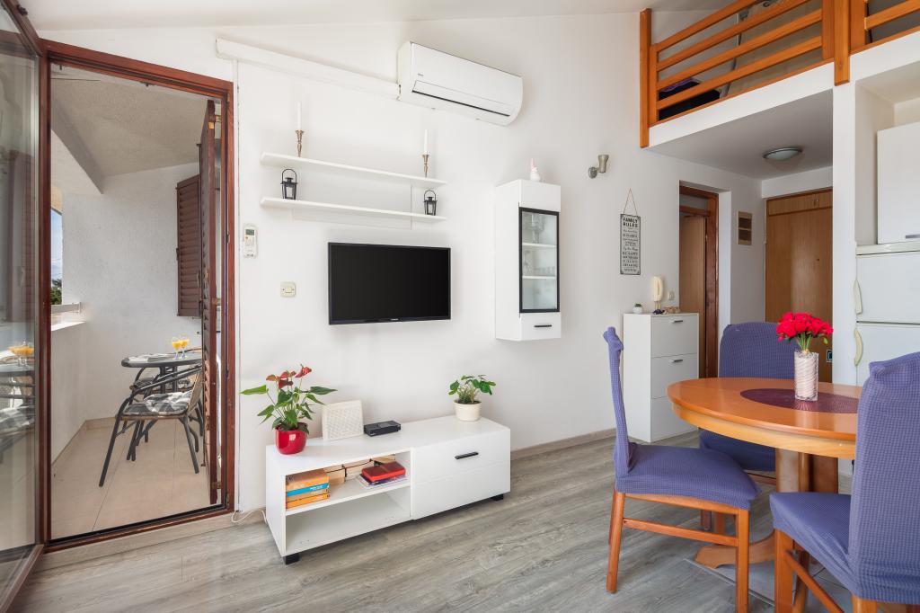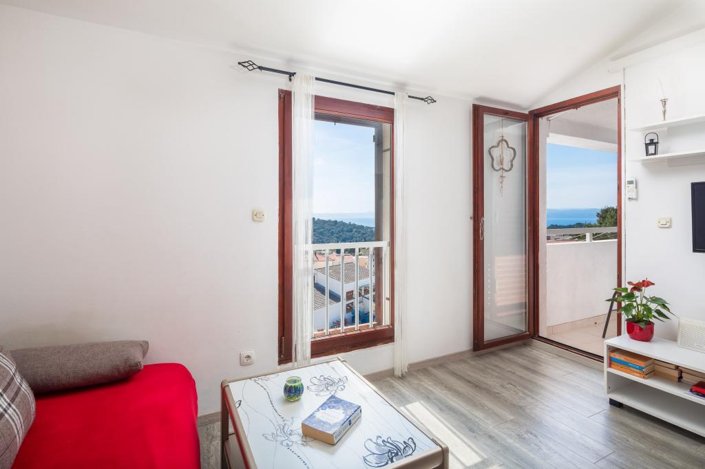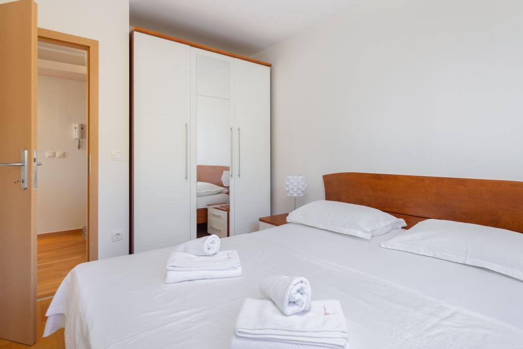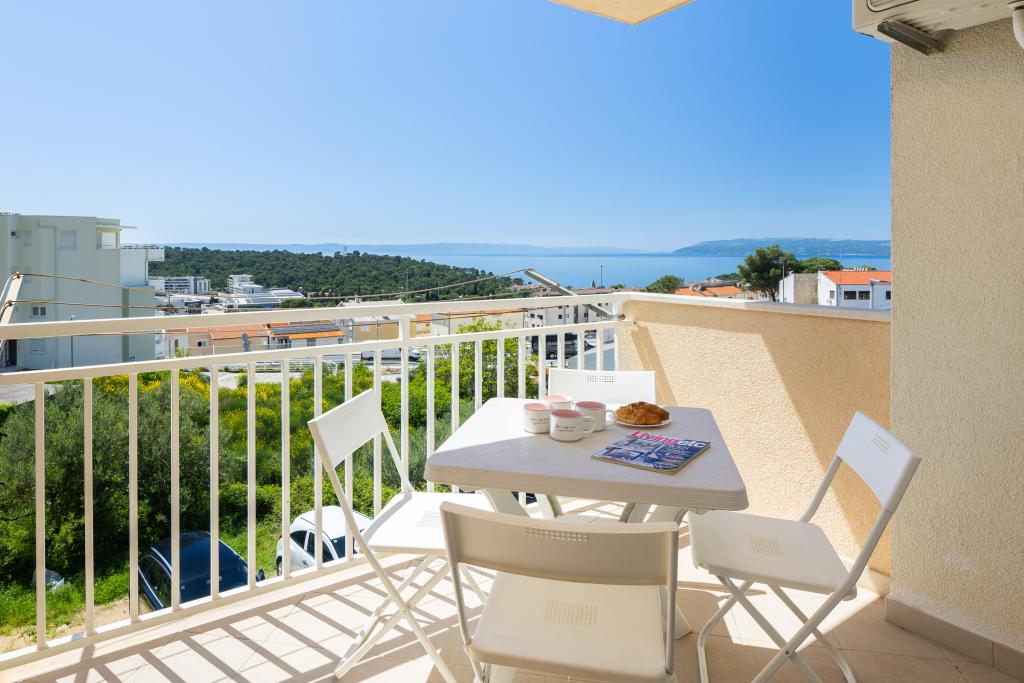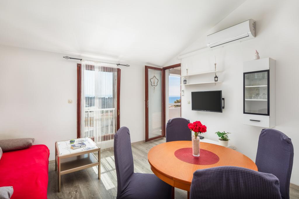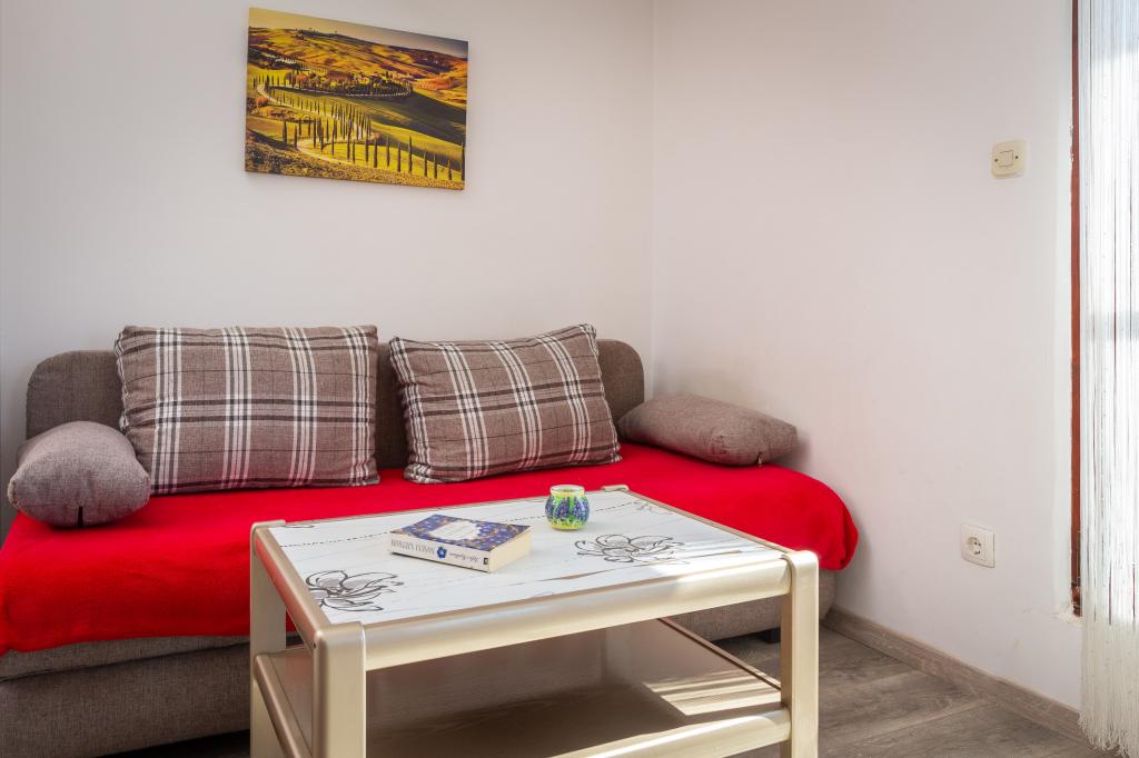 Apartma vključuje 1 spalnico, dnevno sobo z raztegljivim kavčem, kuhinjo in balkon s pogledom na morje. Pred stavbo je brezplačno parkirišče.