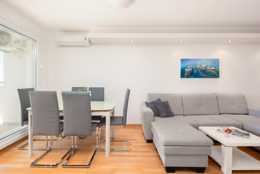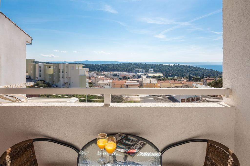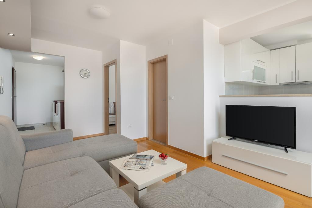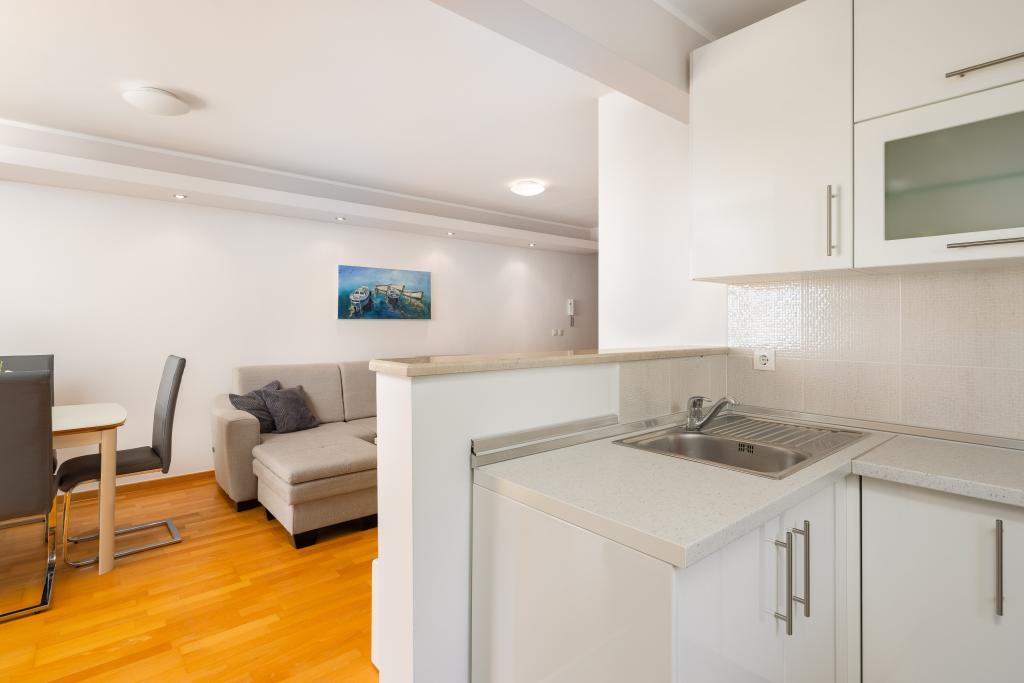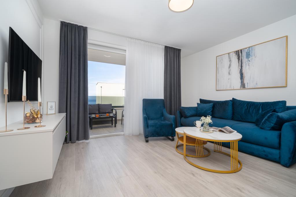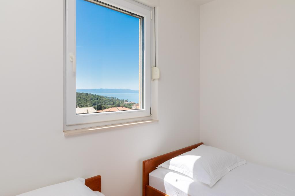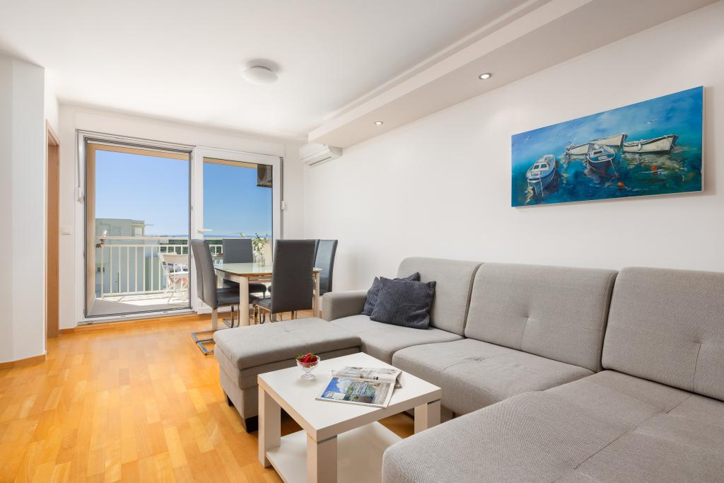 Apartma vključuje 1 spalnico, dnevno sobo z raztegljivim kavčem, kuhinjo in balkon s pogledom na morje. Pred stavbo je brezplačno parkirišče.