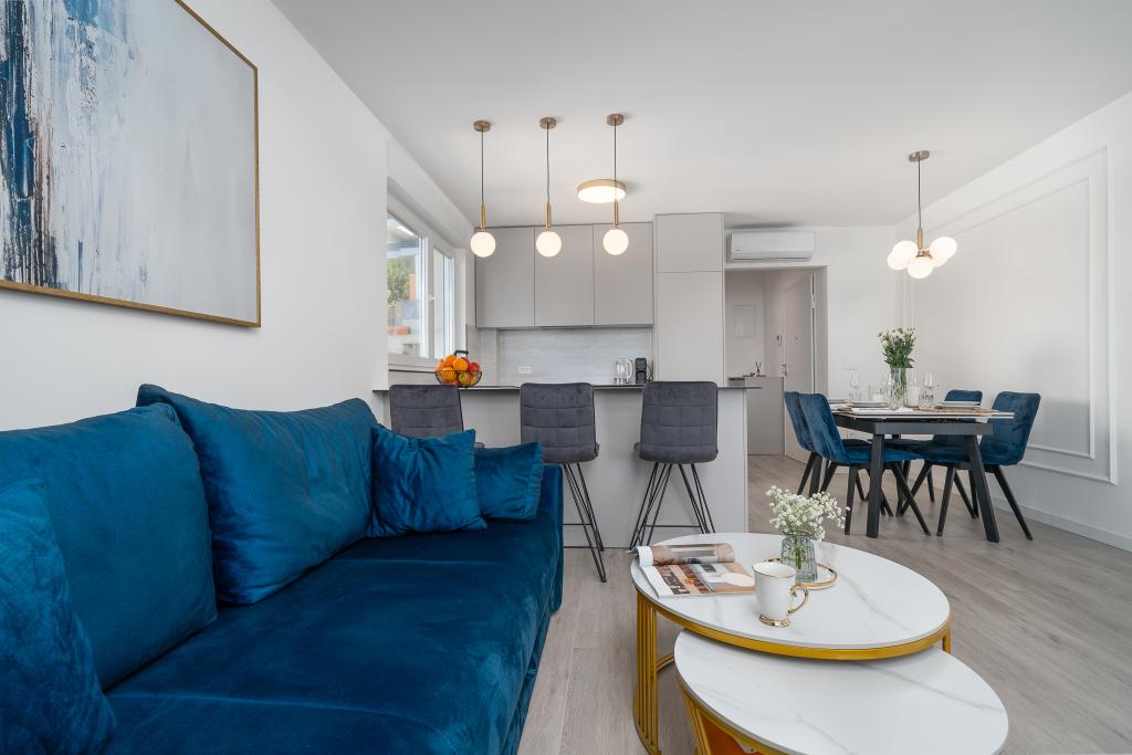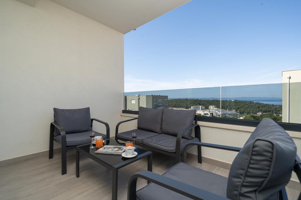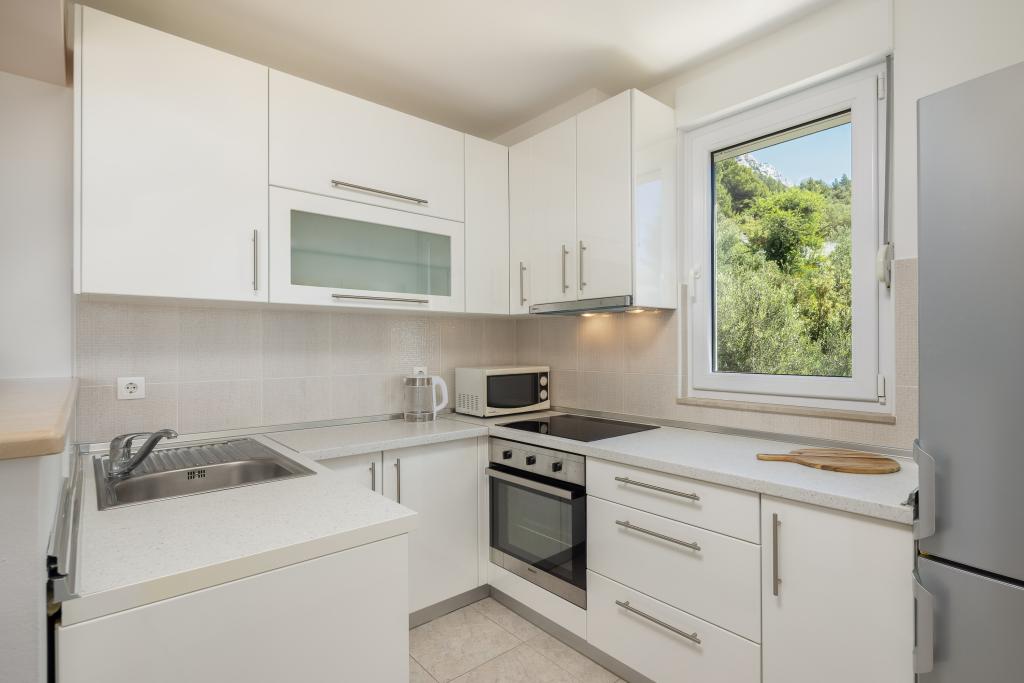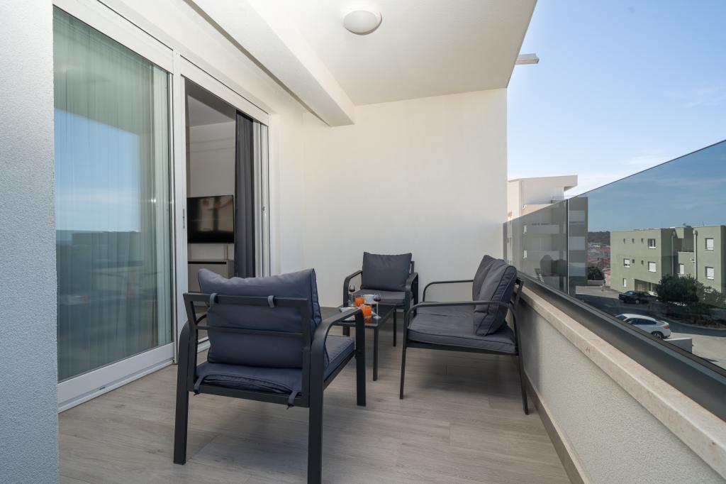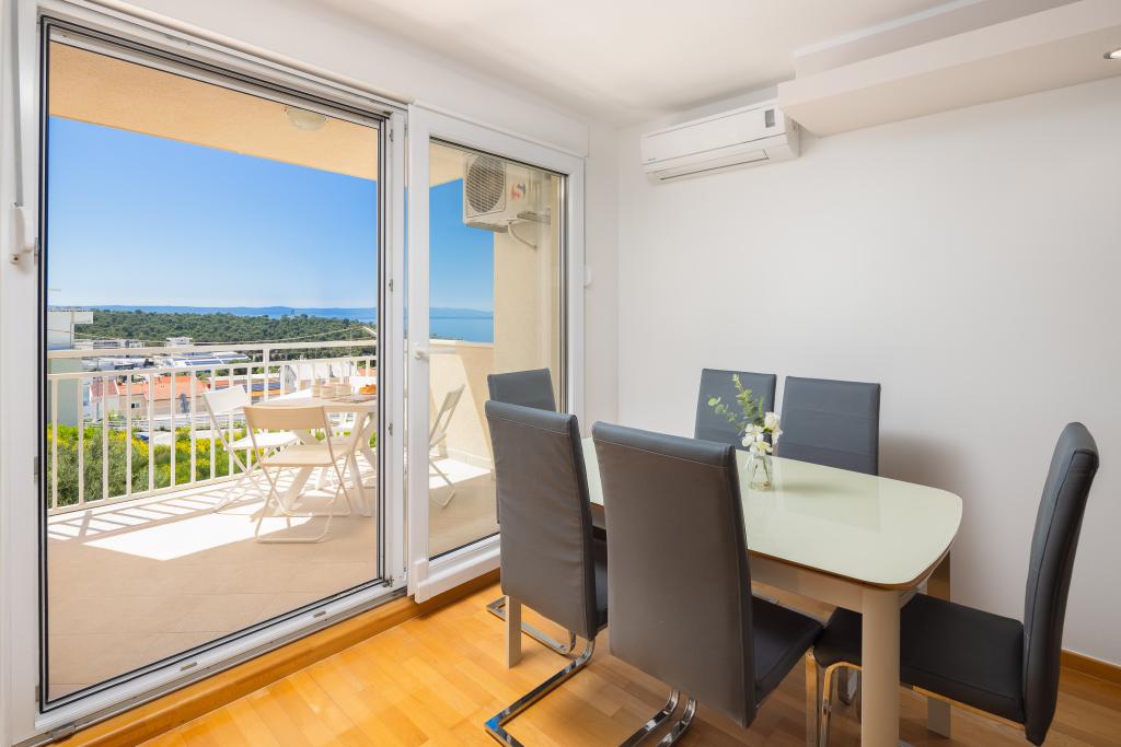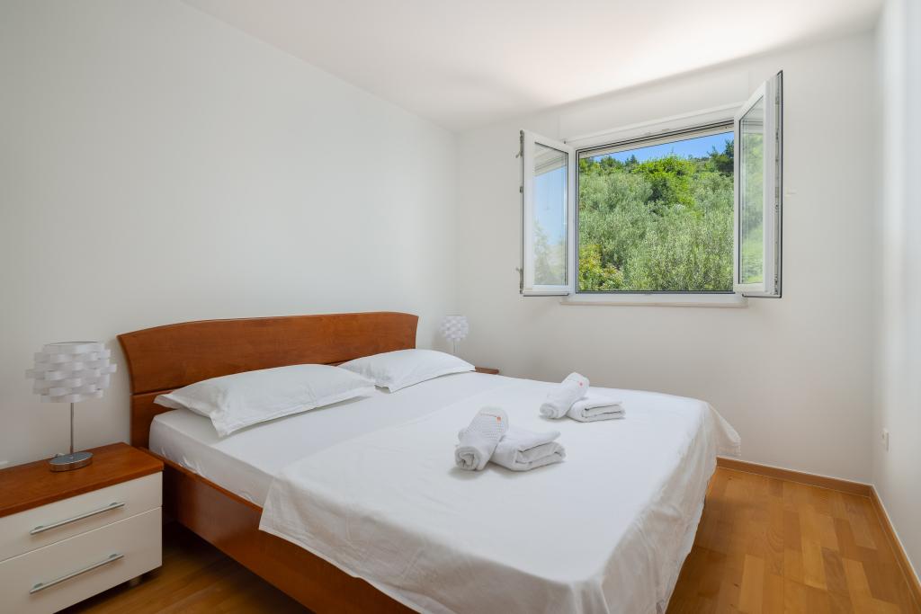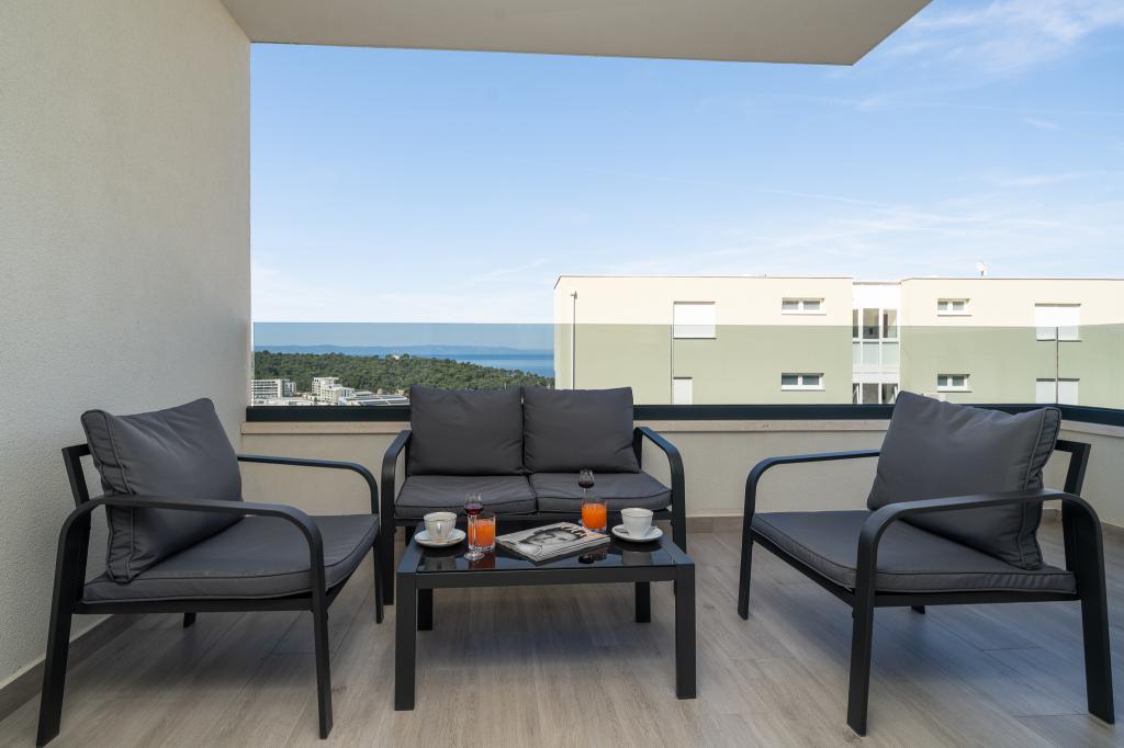 Apartma vključuje 1 spalnico, dnevno sobo z raztegljivim kavčem, kuhinjo in balkon s pogledom na morje. Pred stavbo je brezplačno parkirišče.