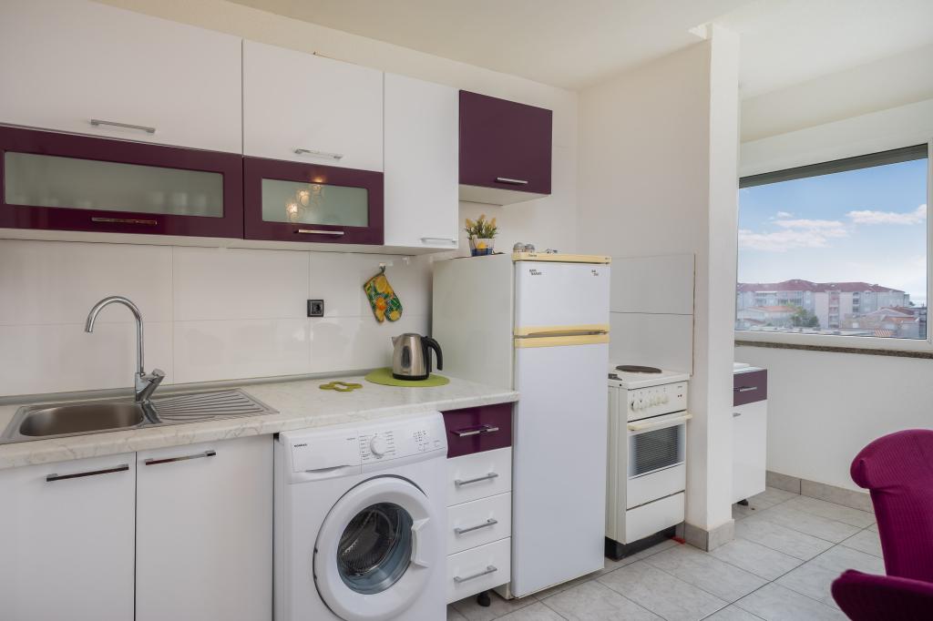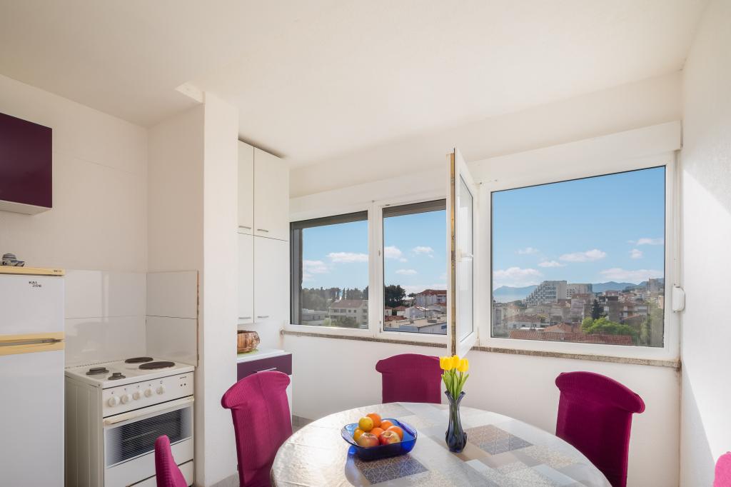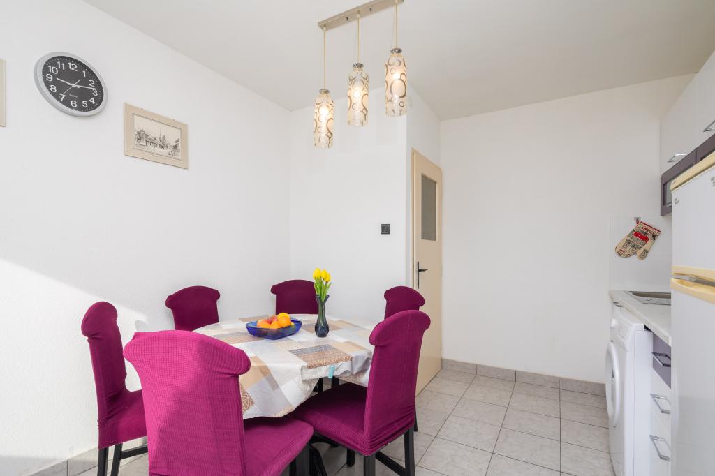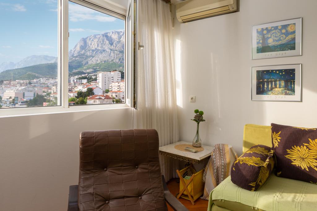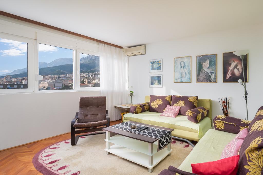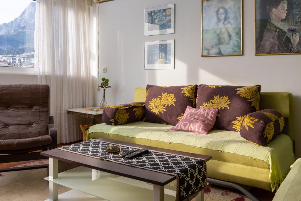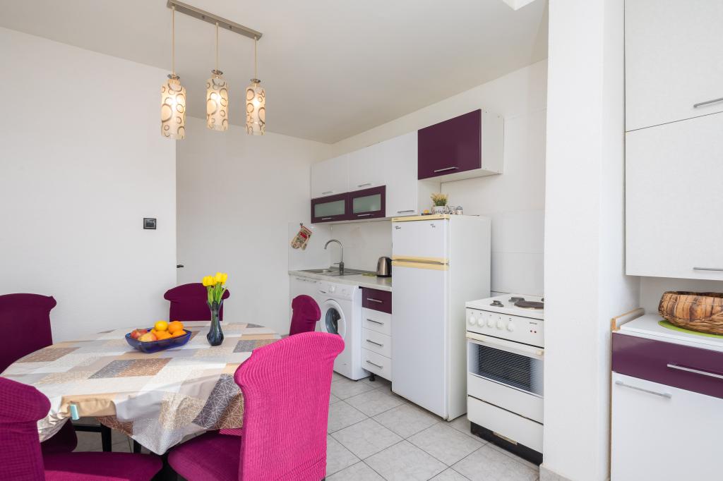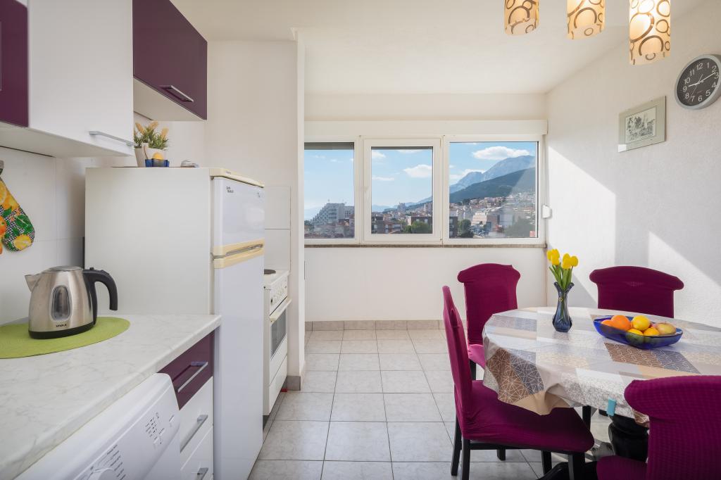 Dobrodošli v našem apartmaju v središču Makarske! Nahaja se v najvišjem nadstropju in ponuja osupljiv panoramski pogled na mesto in delni pogled na morje, kar zagotavlja očarljivo kuliso za vaše bivanje. Ko stopite v notranjost, boste odkrili prostorno spalnico, ki nudi prijeten kotiček za miren spanec. Kuhinja in jedilnica sta idealna za pripravo in uživanje obrokov, v dnevni sobi pa sta dva raztegljiva kavča, ki omogočata bivanje dodatnih gostov. Za dodatno dopolnitev vaše izkušnje, apartma omogoča dostop do očarljive terase na strehi stavbe, opremljene s sedežno garnituro. Brez skrbi, ob objektu je zagotovljeno brezplačno parkirišče, ki zagotavlja brezskrbno bivanje. Za dodatno udobje vam je na voljo tudi pralni stroj. Potopite se v živahno vzdušje Makarske iz našega apartmaja v središču mesta. Rezervirajte bivanje še danes in izkusite popolno mešanico udobja, priročnosti in čudovitega razgleda!