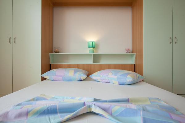 Preberite več Namestitvene enoteCena vključuje: posteljnina, vodo in elektriko, posodo za kuhanje in druge predmete za gospodinjstvo, parkirišče in čiščenje na dan odhoda. Rezervacija je potrjena po prenosu 20% cene aranžmaja (minimalno 90 €) na naš račun. Če zaradi katerega koli razloga, stranka želi odpovedati rezervacijo, bo polog v celoti povrnjen, če je rezervacija odpovedana vsaj 21 dni pred datumom prihoda. Davek ni vključen v ceno in stane za ~ 0,8-1 € na odraslo osebo / dan, otroci, stari 12-18 let. imajo 50% popust. Idealen čas prihoda 13:00 ure in ure odhoda do 9:00.