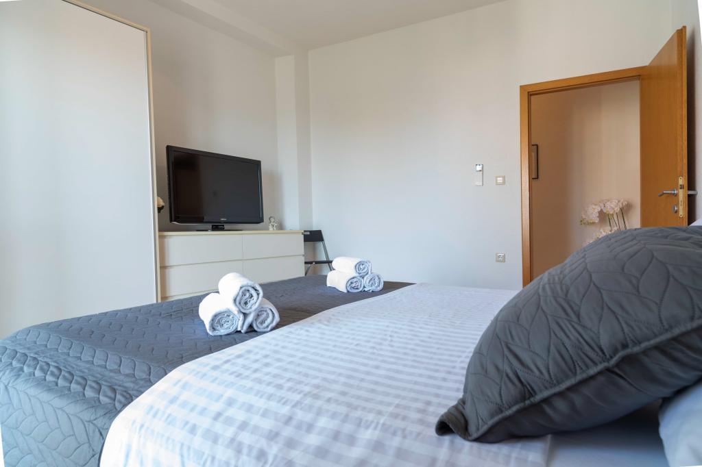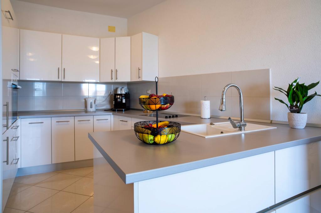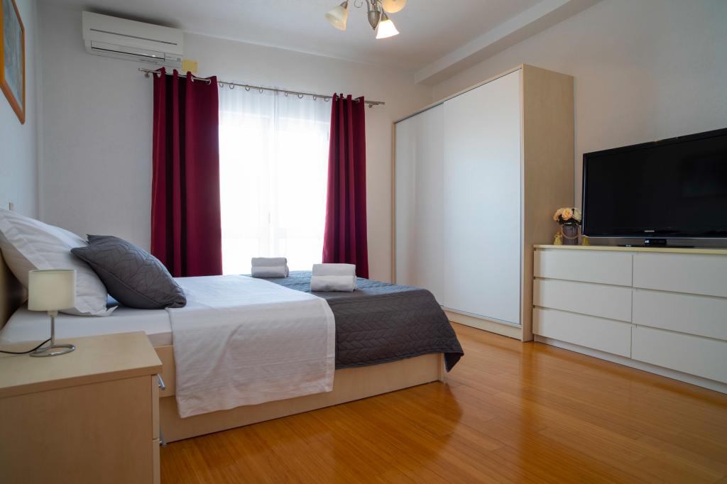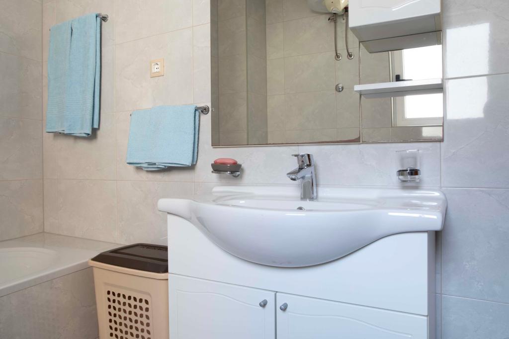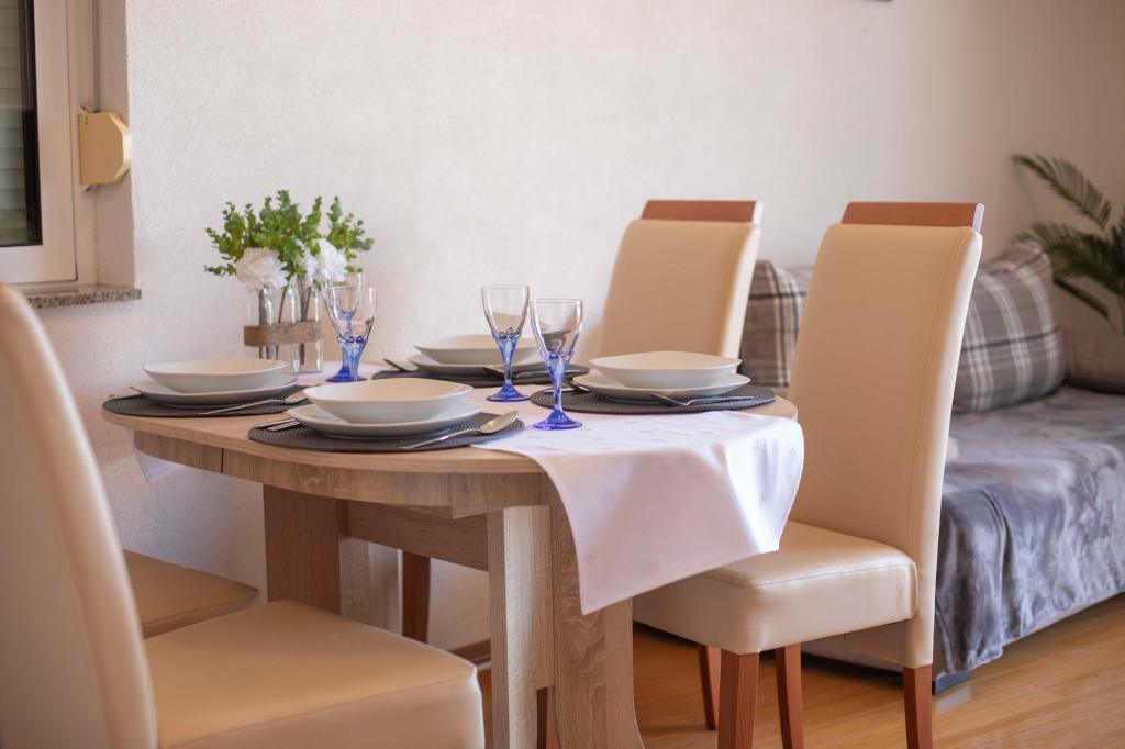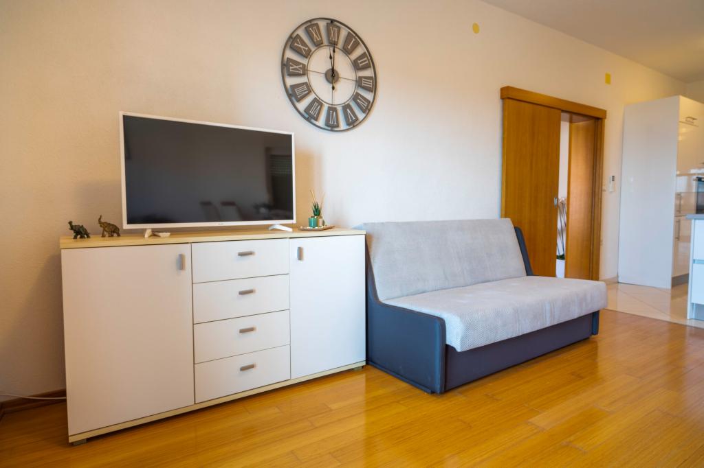 Dobrodošli v apartmaju "Ivana" s pogledom na morje in garažo. Idealno za 2 odrasla in 4 otroke. Sestavljen je iz spalnice, kopalnice, dnevne sobe z 2 raztegljivima kavčema in popolnoma opremljene kuhinje. V dnevni sobi in spalnici sta klimatski napravi.