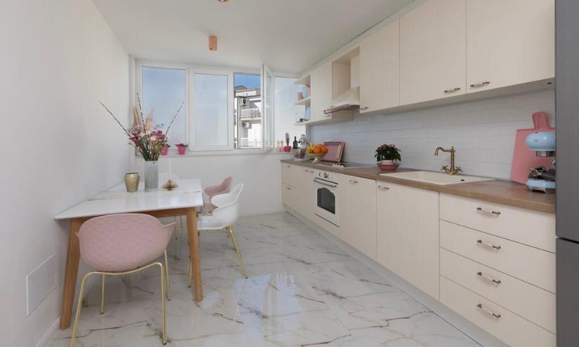 Popolnoma na novo prenovljeno stanovanje v večstanovanjski stavbi. Nahaja se v drugem nadstropju, 3 minute hoje do plaže in 10 minut hoje do centra s parkiriščem pred stavbo.