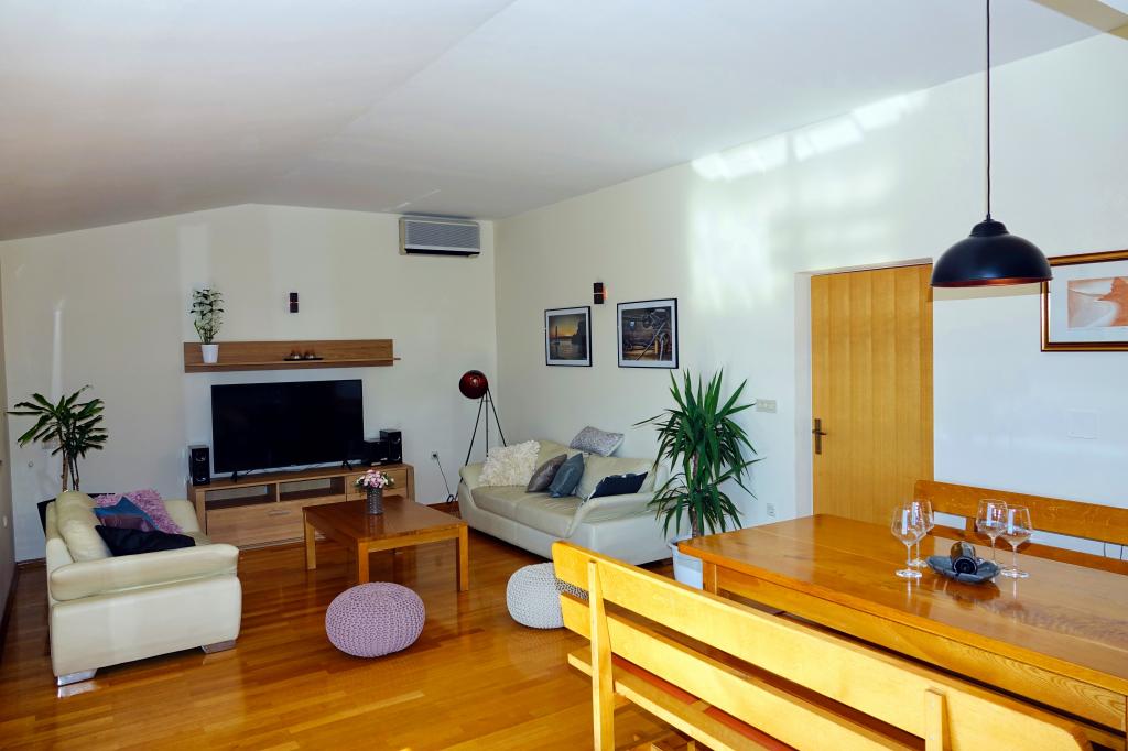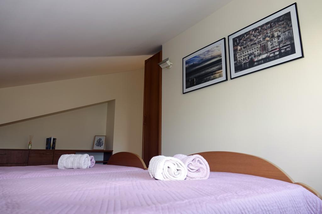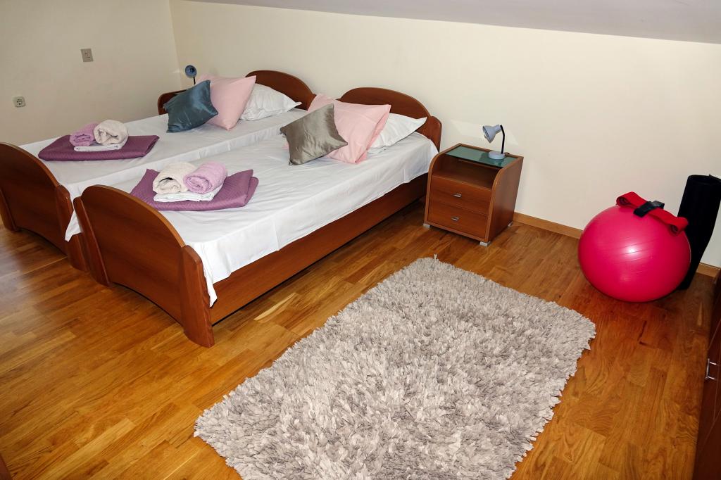 Apartma Jurica se nahaja v mirnem delu mesta, na podstrešju družinske hiše, 450 m od plaže in 10 minut hoje do središča mesta. Sestavljen je iz treh spalnic, 2 kopalnici, kuhinje in jedilnice. Ima veliko teraso in dva balkona s čudovitim panoramskim pogledom na morje in otoke ter na goro Biokovo. Idealno za pare ali družine z otroki. V bližini je trgovina z živili, restavracija je oddaljena 300 metrov. Domačini so vam med bivanjem na voljo za vse podrobne informacije o izletih, izposoji čolnov, taksi storitvah, izposoji koles ...
