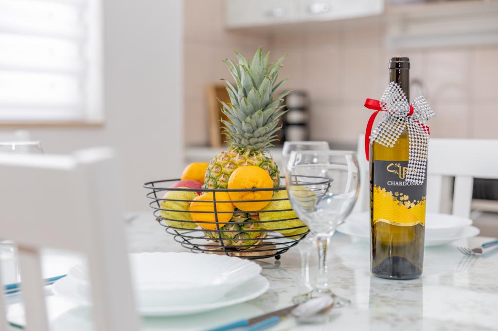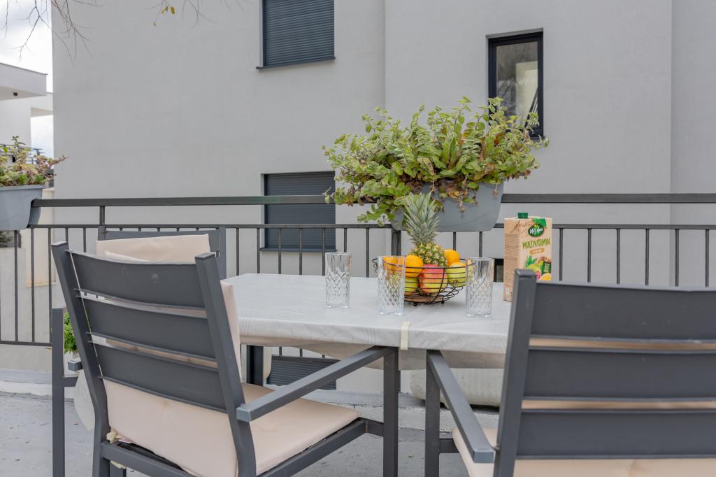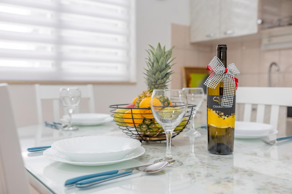 To prijetno stanovanje, veliko približno 40 m², ponuja vse, kar potrebujete za prijetno bivanje. Namestitev vključuje: Spalnico z udobno zakonsko posteljo, dnevno sobo z raztegljivim kavčem (primerno za 1 odraslo osebo ali 2 otroka), pametno televizijo in klimatsko napravo, popolnoma opremljeno kuhinjo s pomivalnim strojem, mikrovalovno pečico, aparatom za kavo in grelnikom vode, kopalnico s tušem in pralnim strojem. Pred hišo je zasebna terasa z jedilno mizo. Na voljo vam je tudi skupni prostor za žar - idealen za sproščujoče večere na prostem. Stanovanje je idealno za pare ali manjše družine, ki iščejo udobno in dobro opremljeno namestitev v mirnem okolju. Ponuja idealno kombinacijo miru in udobja, a je le nekaj minut vožnje oddaljeno od središča mesta. Uživajte v sproščujočih trenutkih ali raziščite bogato ponudbo mesta z restavracijami, kavarnami in trgovinami - vse je na dosegu roke. Zagotovljeno je parkirno mesto za dve vozili.