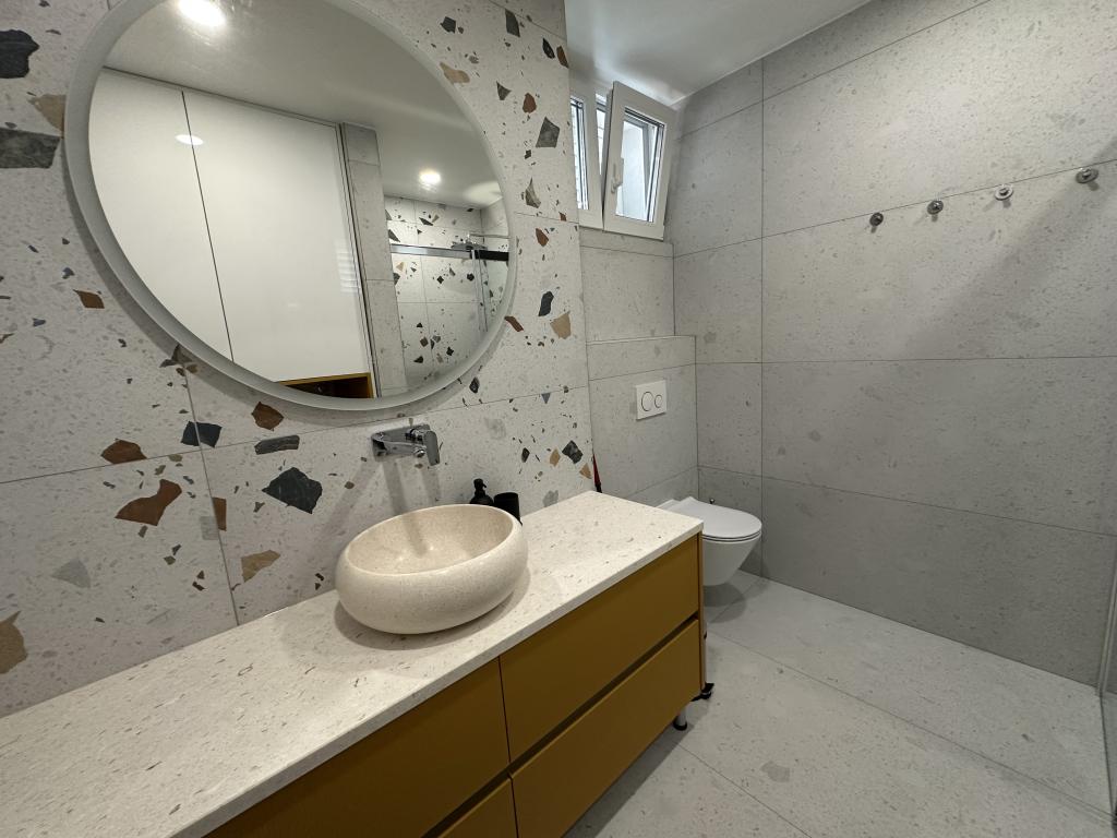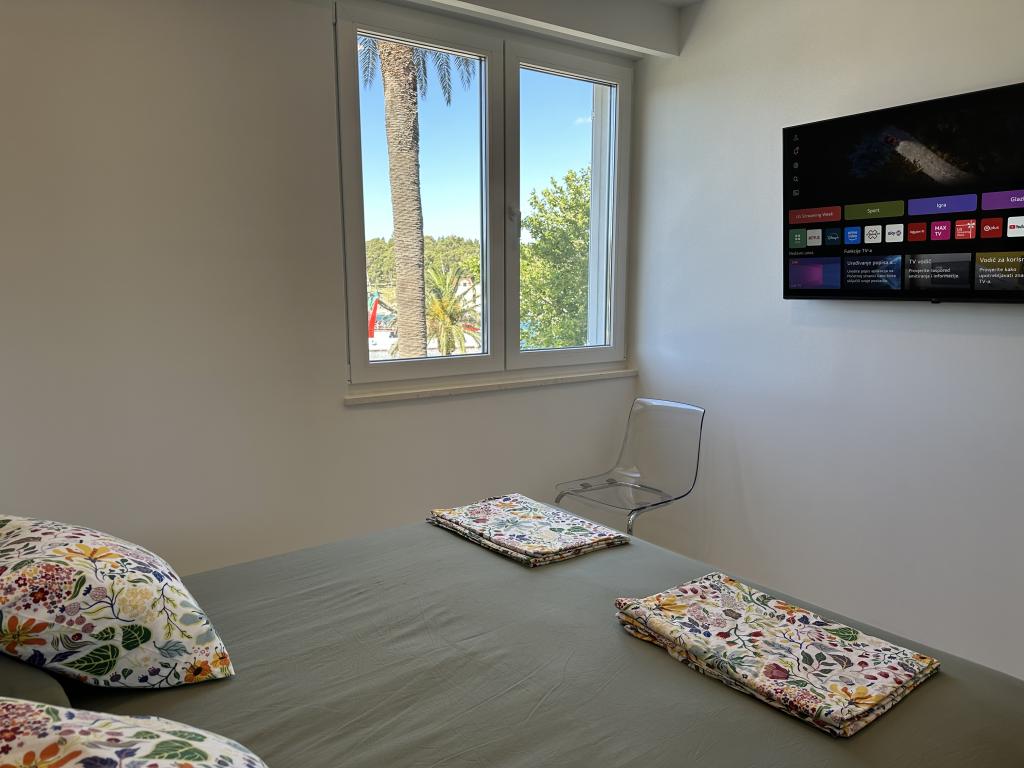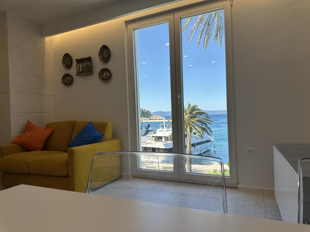 Apartma Palma Gena je bil popolnoma prenovljen v stanovanjski stavbi v samem središču starega mestnega jedra. Nahaja se tik ob obali, pogled z južnih oken pa sega na čudovito makarsko pristanišče, polotoka Sv. Petar in Osejava ter otok Hvar. Nahaja se ob najvišji palmi na makarski obali. V družinski lasti je že več kot pol stoletja in pripoveduje zgodbo o antiki in makarskih legendah. Objekt je v samem središču mesta, zato se vam mesto, takoj ko stopite iz apartmaja na obalo, odpre v vsej svoji lepoti in sijaju. Samo čaka, da ga raziščete. Številne kavarne in restavracije so v neposredni bližini ... lekarna, banka, pošta ... Prodnata plaža v Donji Luki je oddaljena približno 10 minut hoje čez čudovito makarsko obalo. Čeprav je v samem središču in vrvežu, vam apartma ponuja mir in intimnost ter je popolna izbira za tiste, ki želijo doživeti mediteranski način življenja.