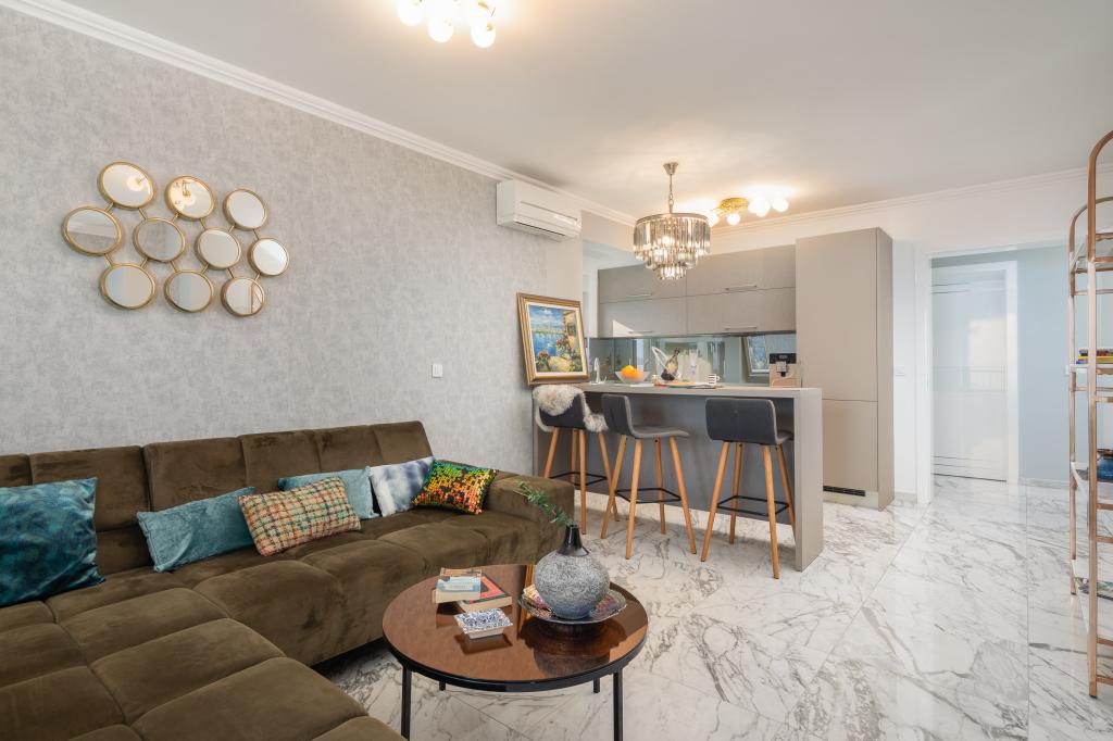 Doživite popolno kombinacijo udobja in elegance v Apartmaju Sara z dvema spalnicama in dvema kopalnicama. Sodoben apartma ponuja balkon, s katerega lahko uživate v pogledu na morje. Ker se nahaja 300 metrov od plaže, imate vse potrebne objekte na dosegu roke, kar zagotavlja praktičnost in preprostost. Lekarna, supermarket in pekarna so 20 m stran. Parkiranje v garaži je vključeno v ponudbo.