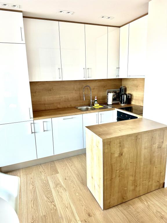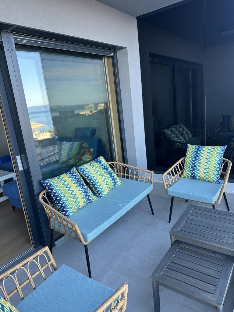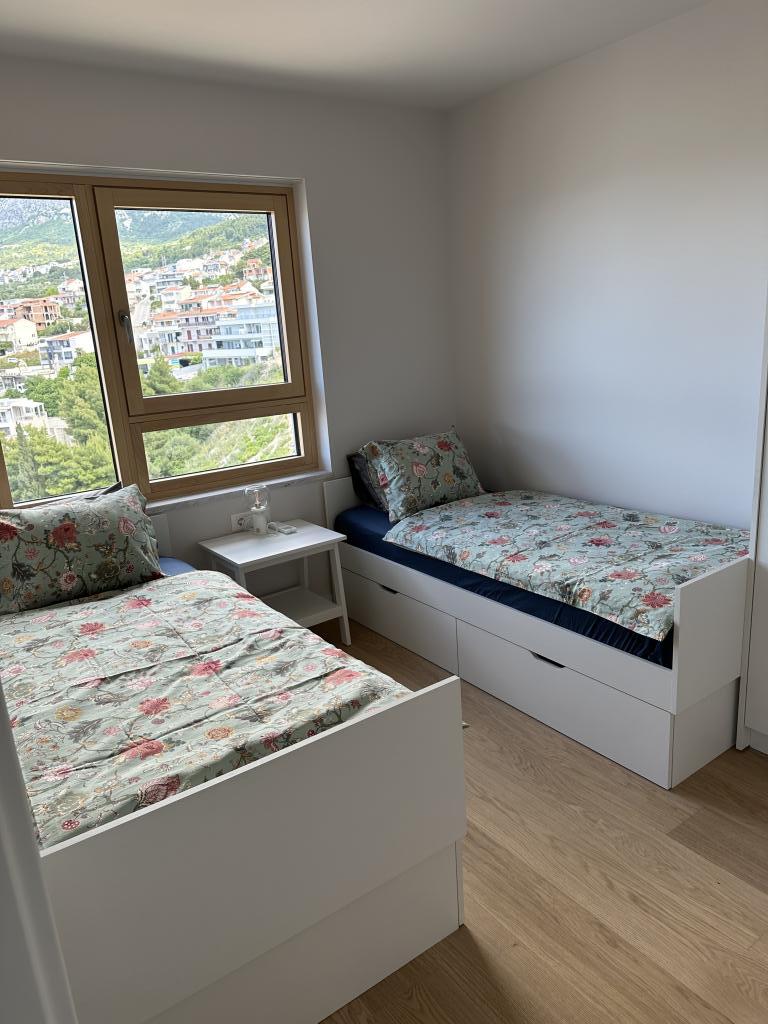 Novo prenovljeno stanovanje v samem središču Makarske. Stavba je zgrajena po najvišjih standardih, luksuzno opremljeno tako kot samo stanovanje! Na voljo je lastno parkirišče, zunanje parkirišče št. 6 za avtomobile na utekočinjeni naftni plin in dve parkirni mesti v nadstropju -2; št. 1 in 2. Stanovanje se nahaja v 3. nadstropju. Orientirano je proti jugozahodu. Sestavljeno je iz kuhinje z jedilnico in dnevne sobe v odprtem prostoru. Kuhinja je popolnoma opremljena, tako da lahko v njej uživate v pripravi svojih najljubših obrokov tudi med letnim dopustom. Prostorna kopalnica s tušem in pralnim strojem. Dve spalnici! Glavna spalnica ima posteljo 160/200, druga pa dve postelji 90/200. Stanovanje je popolnoma opremljeno s posteljnino, brisačami, kuhinjskimi krpami in papirnatimi brisačami. Tekoče milo in detergent za pranje perila, toaletni papir in detergent za posodo ter tablete za pomivalni stroj. S pokrite terase se razprostira čudovit razgled na mesto Makarska ter otoka Brač in Hvar.