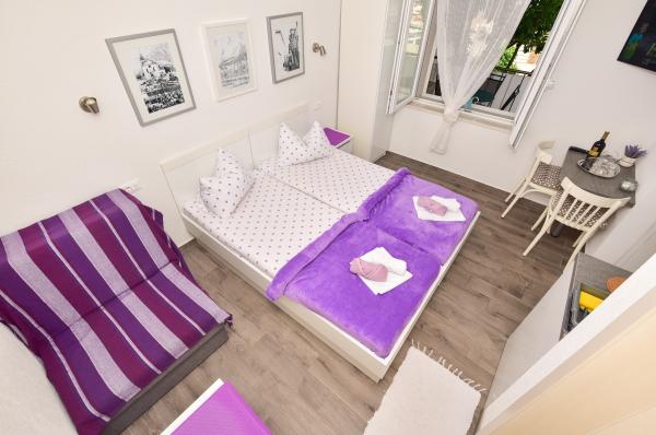 Turistična taksa je vključena v ceno.Najbližji znamenitosti Avtobusna postaja v Makarski 0, 1 km Makarska Port 0, 4 km Makarska Riva 0, 5 km Makarska Glavni trg 0, 6 km Katedrala. Mark 0, 6 km Svetilnik Sv. Petra 0, 8 km Frančiškanski samostan v Makarski 0, 9 km Bencinska črpalka v Makarski 1, 3 km Biokovo 4, 8 km Najbolj priljubljene znamenitosti Cerkev sv Lawrence 8, 5 km Kip sv Nicholas 8, 6 km Malakološka Zbiranje 8, 7 km Promenada Baska Voda 8, 7 km Arheološki muzej zbirka 8, 7 km Punta Rata 11 km Kamen Brela 11, 2 km Restavracije in trgovine Caffe Bar Giro Cafe 0 km Pizzeria Domina Restavracija 0 km Tržno Simic Supermarket 0 km Tržno RIBOLA Supermarket 0 km Cherry trg 0, 1 km Restavracija Inn Restaurant 0, 1 km Restavracija Ivo Restavracija 0, 2 km