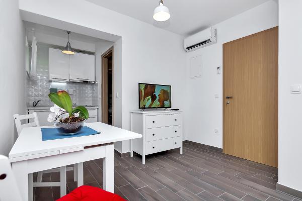 Na novo prenovljena in popolnoma opremljena stanovanja v centru mesta. Nahajajo se v mirni ulici le nekaj minut stran od obale in vsega udobja. V bližini avtobusne postaje. Le 10 minut stran od najbližje plaže. Zagotovljeno brezplačno parkiranje pred hišo.