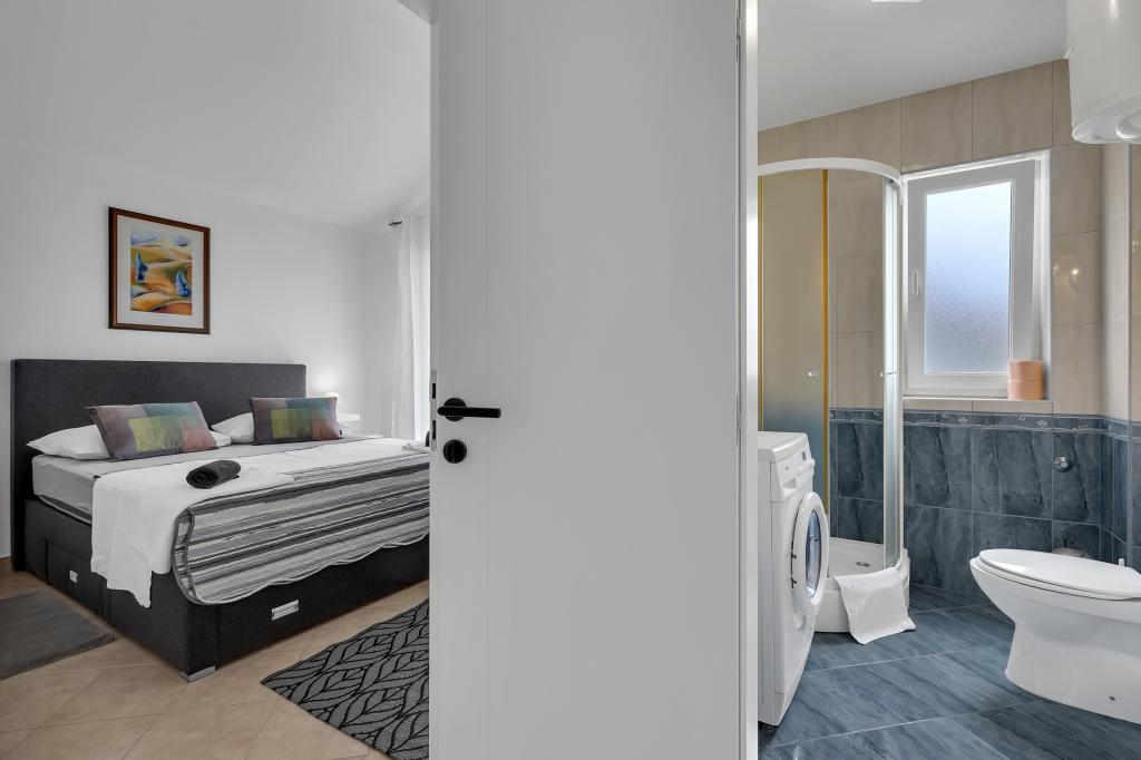 Apartma je bil zelo velik in prijeten z odličnim pogledom na morje z balkona! Ana je tudi super gostiteljica, ki nas je že večkrat vprašala, ali moramo kaj prinesti, a to ni bilo potrebno, saj je v apartmaju vse - od posode ali pralnega stroja! Popolno bivanje - zelo blizu plaže (3 min peš) in 10 min do središča mesta (pred središčem), ki je že videti kot center, z veliko restavracijami, bari, otroškimi igrišči itd. Hvala, Samanta in Luka!
