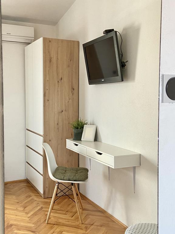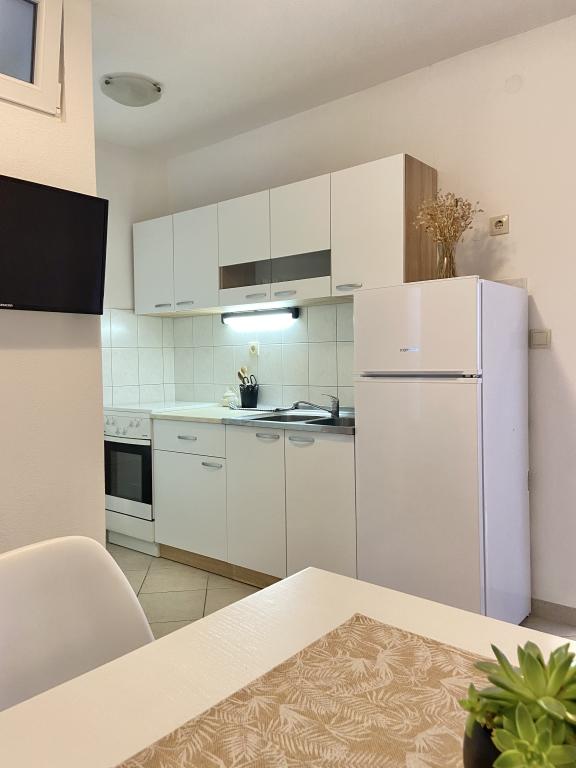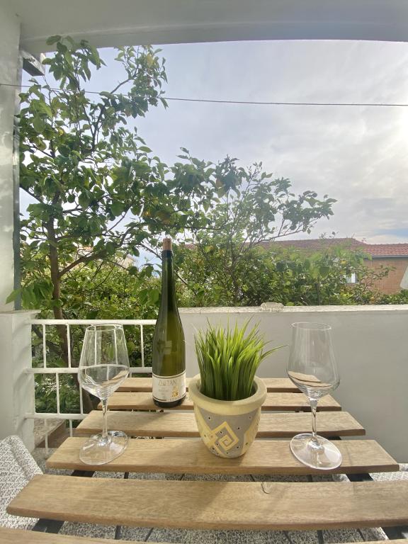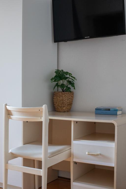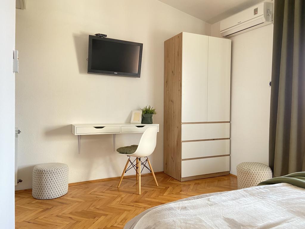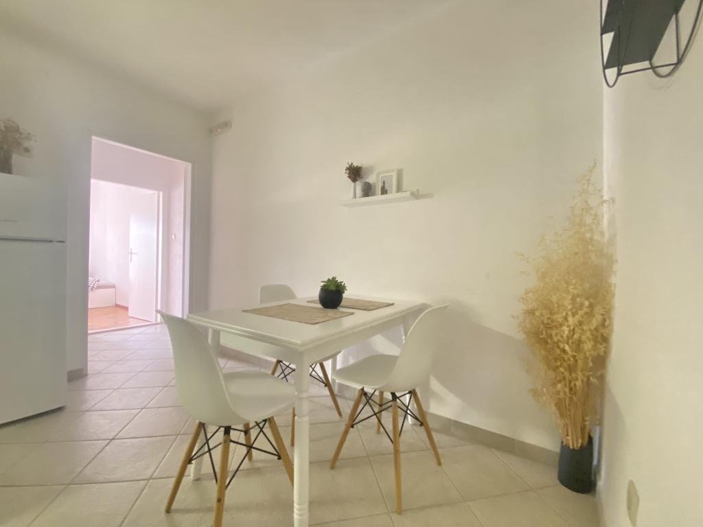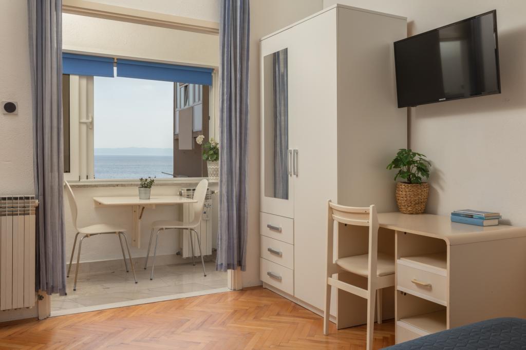 Apartma 5+4 je idealen za družine z otroki. Ima dve spalnici (ena za 2 in ena za 3 osebe), dva raztegljiva kavča v dnevni sobi, 3 kopalnice, kuhinjo in veliko dvorišče s sedeži, žarom in otroškim igriščem. Manjši apartmaji in sobe v objektu so primerni za 2 do 3 osebe. Objekt je od plaže oddaljen do 5 minut hoje in 10 minut do centra.