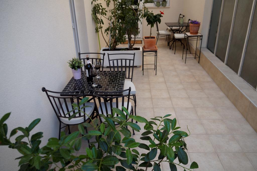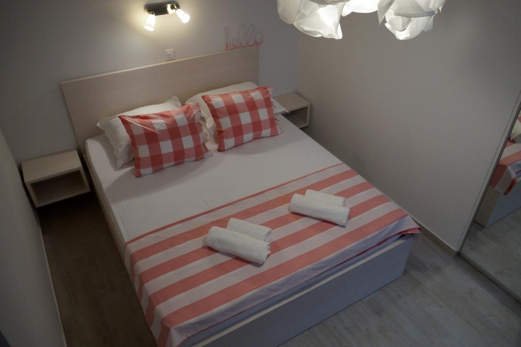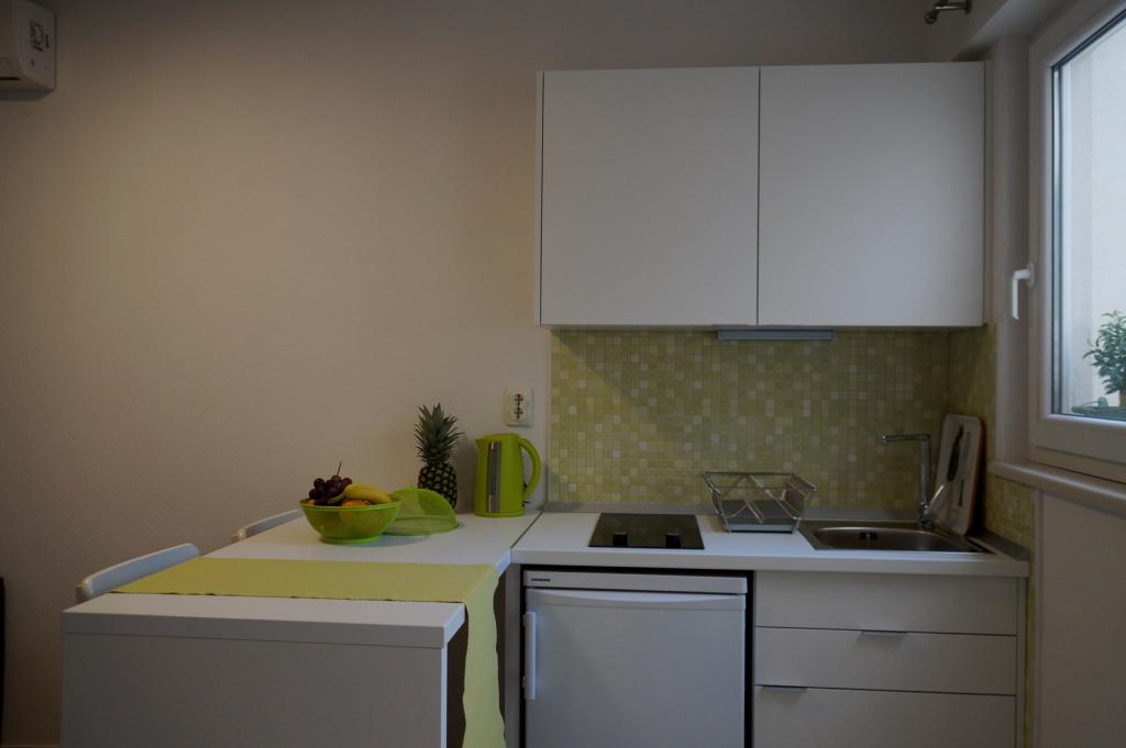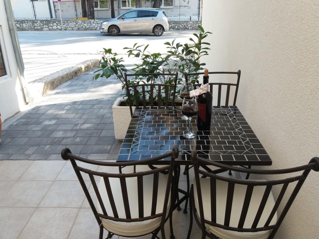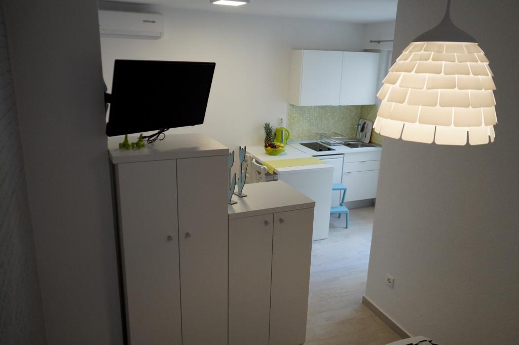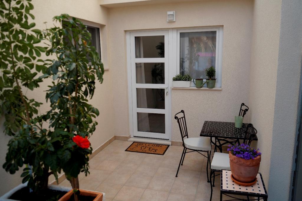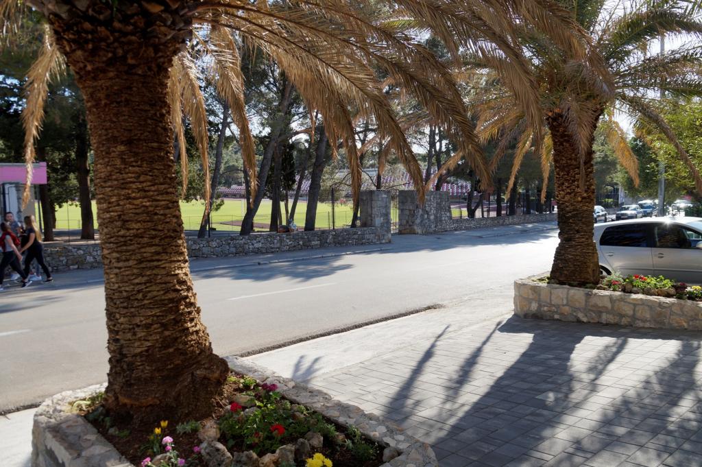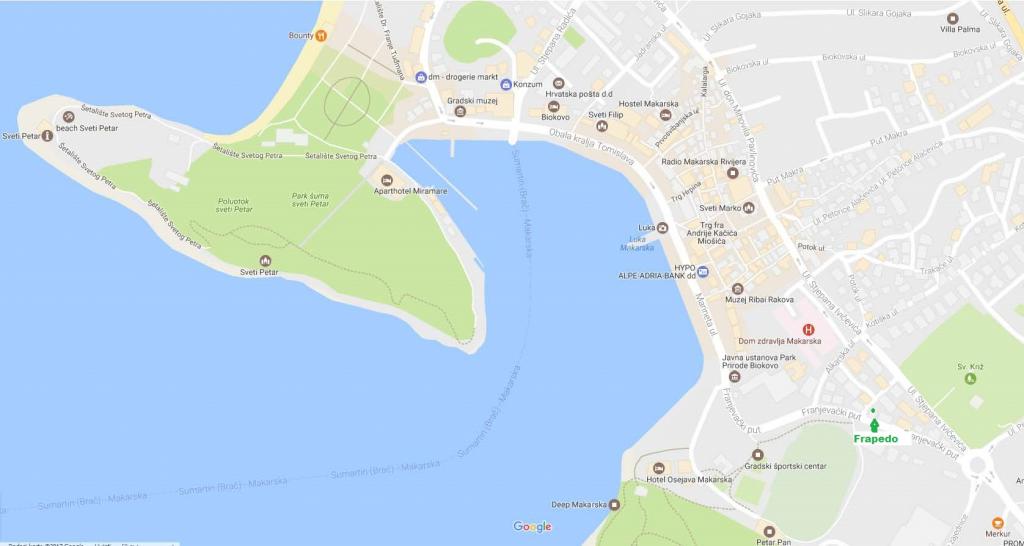 Apartmaji Frapedo so le 300 metrov od morja in rive ter centra mesta. V bližini supermarketa je Lidl (200m), zdravstveni dom 100m, muzej školjk 100m, nasproti apartmaja je športni center z nogometnimi igrišči, tenisom, atletiko, košarko, telovadnico, notranjim bazenom, telovadnico. 3 minute hoje brez vzpona morate priti do mestne obale, prvih kavarn in restavracij ali do središča mesta. Glavna mestna plaža je na drugi strani mestne obale in je 10 minut hoje, najbližja plaža ob hotelu Osejava pa je oddaljena 250 m. Pred hišo je parkirišče za vaše vozilo, poleg vsakega stanovanja pa sedežna garnitura. Apartmaji so popolnoma novi in opremljeni z vso potrebno opremo za udobno bivanje v njih. Dolgoletna turistična tradicija naše družine je zanesljivo zagotovilo, da bo vaše bivanje v naših apartmajih prijetno doživetje