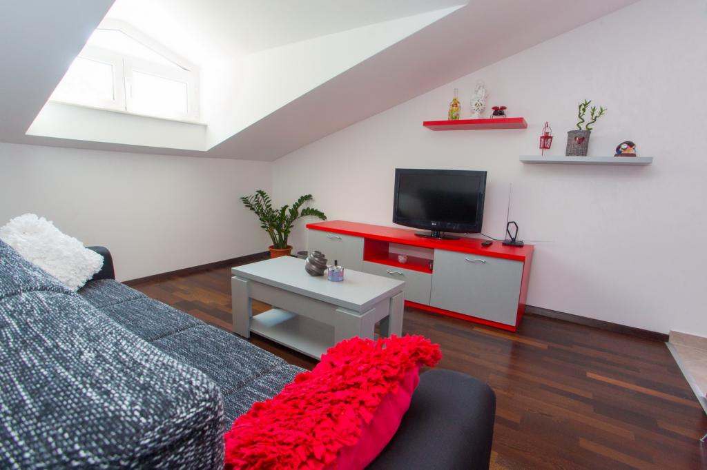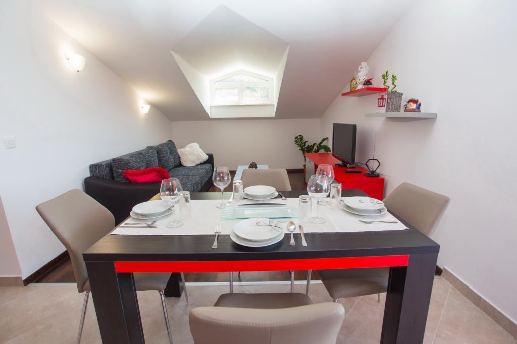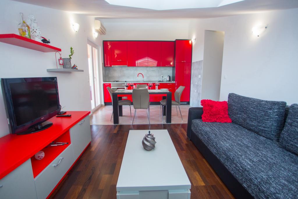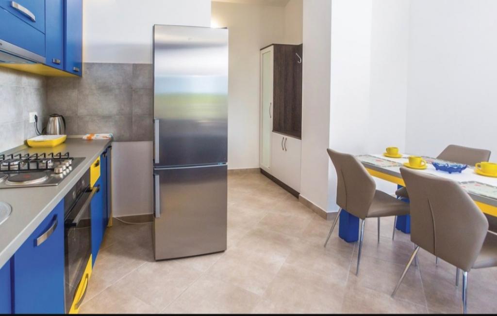 Popolnoma in moderno opremljeni apartmaji v mirnem delu Makarske se nahajajo v bližini morja. Objekt se nahaja 20 minut hoje do centra in 15 minut hoje do prve plaže. Idealni apartmaji za 4 osebe imajo eno spalnico in velik raztegljiv kavč v dnevni sobi. Stanovanje ima pokrito teraso 16 m2, idealno za popoldne in zgodnje jutranje užitke pred hišo in zavarovano parkirišče. Cene so določene le na zahtevo, odvisno od dolžine bivanja, ki ga odobrimo, pri določenih rezervacijah pa so na voljo dodatni popusti.