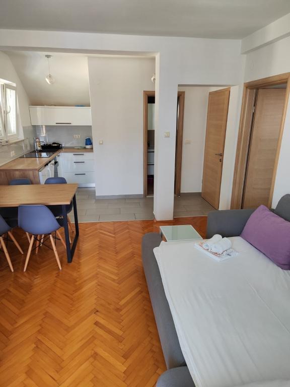 Čudovito moderno stanovanje, zelo blizu morja, mirna soseska, parkirišče pred hišo, čudovit vrt, balkon v senci zjutraj, gospod Miloš in gospa Željka sta najboljša gostitelja.