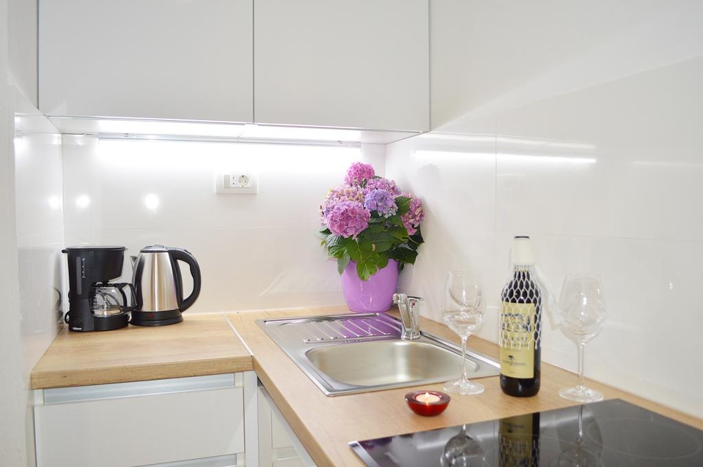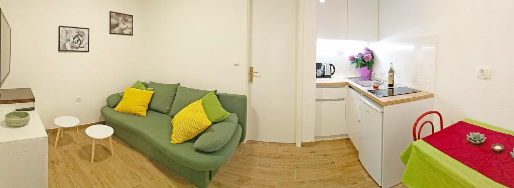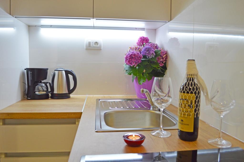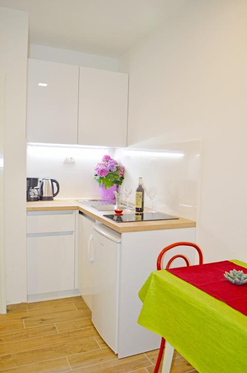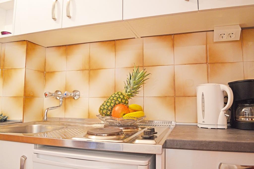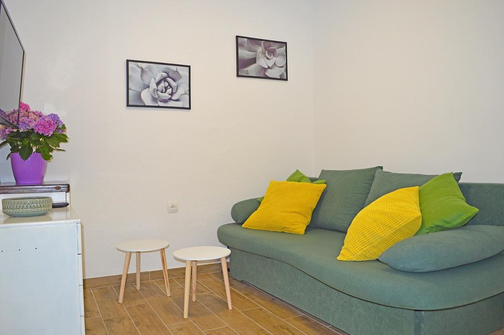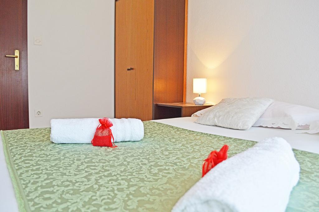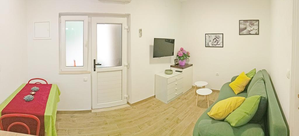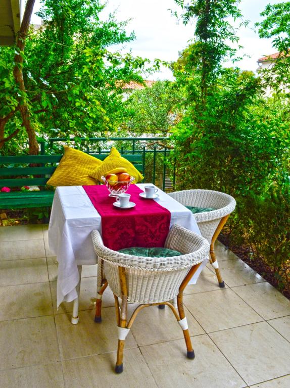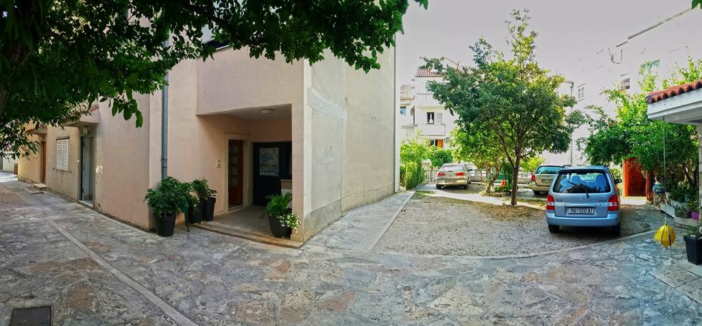 Hiša se nahaja v mirnem delu mesta, v majhni slepi ulici, brez hrupa. Dvorišče je gazebo z žara in mizo. Parkirišče je pred hišo, in je vključena v ceno. Stavba je bila oddaljena od plaže in 5 min hoje od glavnega trajektnega reive in 10 min. Enote so opremljene z vso potrebno za vaš prijeten oddih. Posteljnino menjajo vsakih 7 dni in brisače vsake 3 dni.