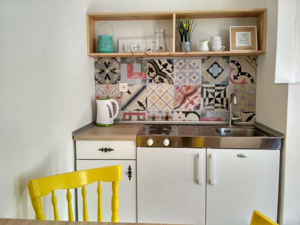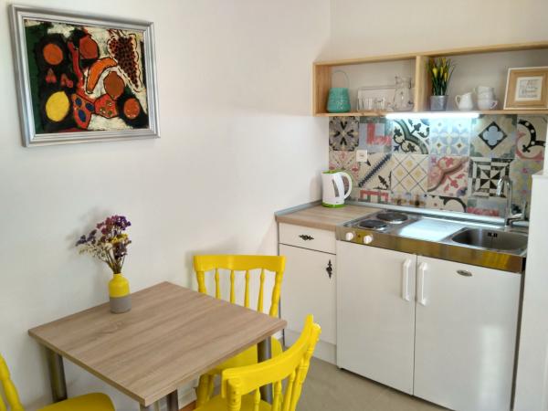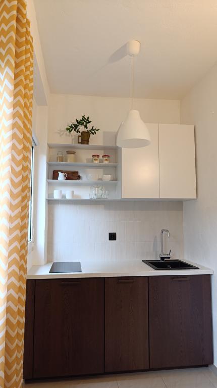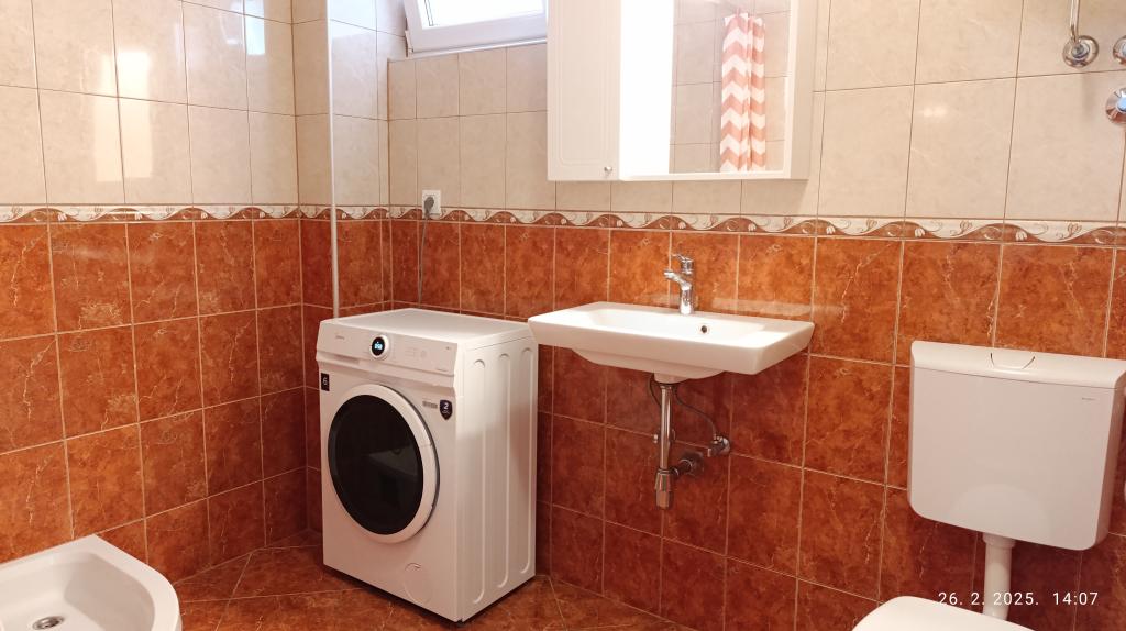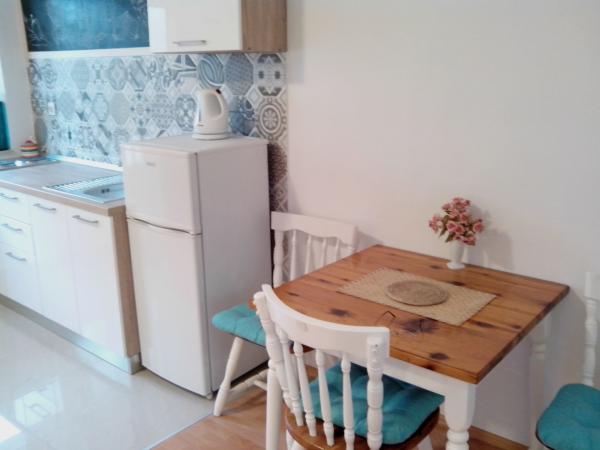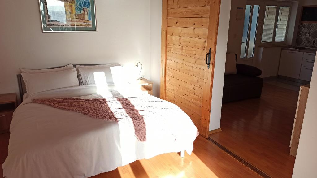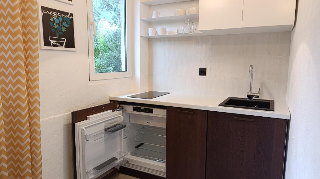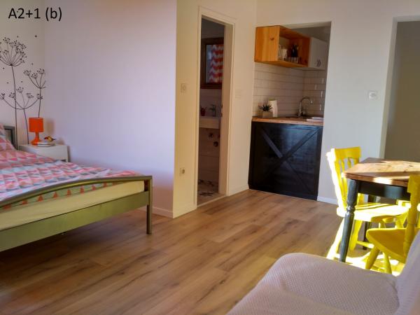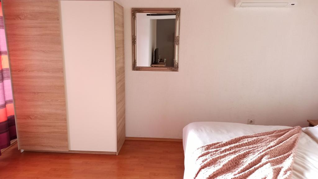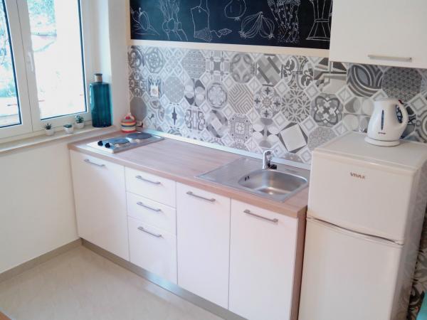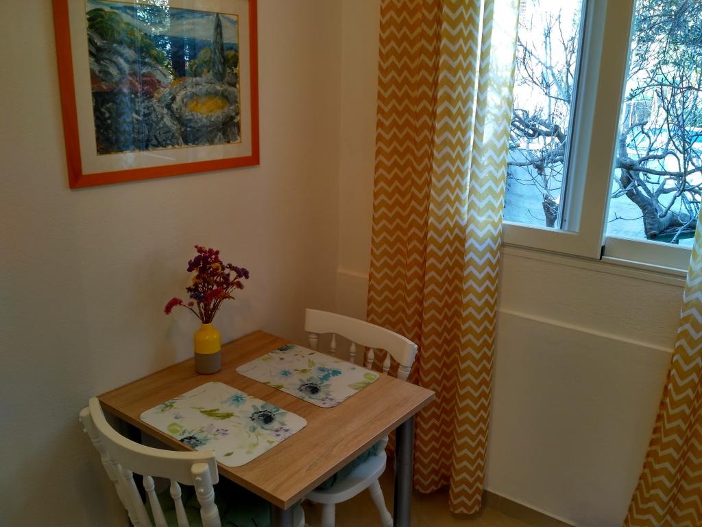 Apartma je skromen, a ima vse, kar potrebuješ na počitnicah. Ima celo likalnik, na veliko veselje mojega moža, haha. V apartmaju lahko enostavno skuhaš večerjo, perilo opereš ročno (zunaj okna so vrvi za perilo). Soseska je tiha in mirna, z razgledom na dve čudoviti drevesi: figovo in oljko ter goro onkraj. Kruno, naš gostitelj, je zelo prijazen in ustrežljiv. Sprejel nas je z nasmehom in se z istim nasmehom tudi poslovil. Hvala, Kruno, za čudovito bivanje!