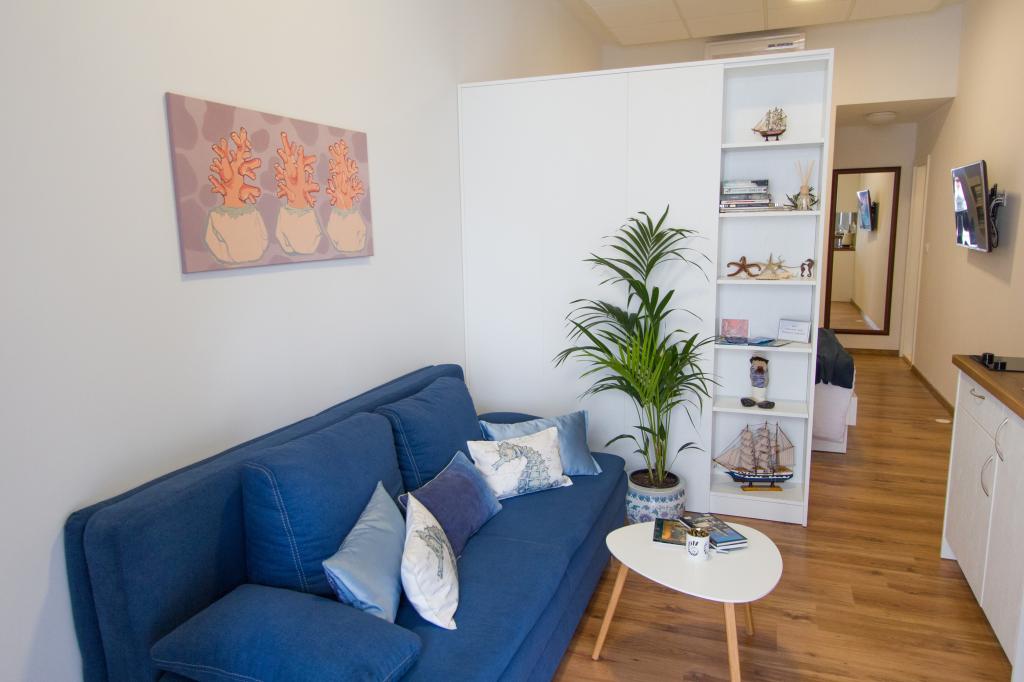 Apartmaji Laura se nahajajo v pritličju hiše v samem centru Makarske, blizu pristanišča in morja. Vse bistvene dobrine so zelo blizu (banka, pošta, lekarna, pekarna, trgovine, restavracije, trajektno pristanišče). Parkirišče se nahaja tik pred apartmajem.