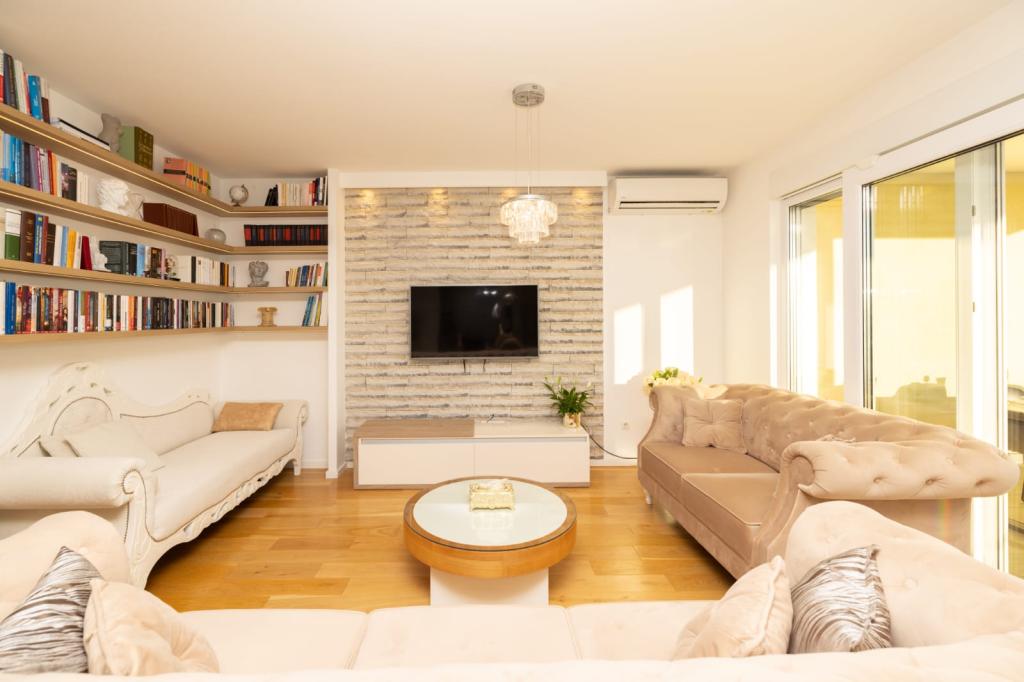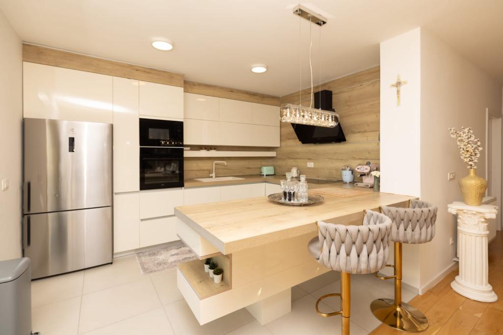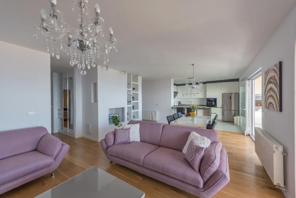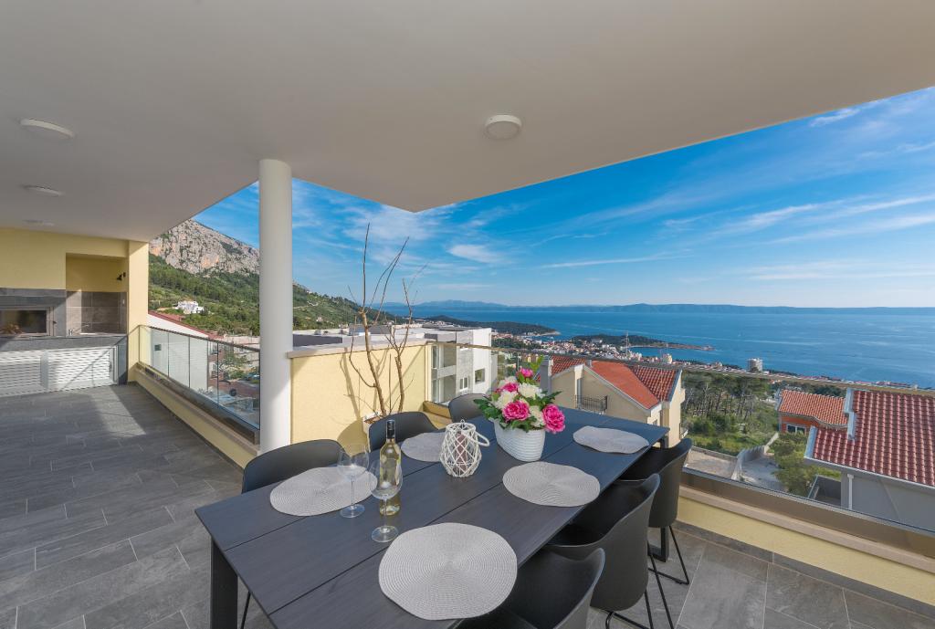 Penthouse Jure in Penthouse Nikola v Makarski sta luksuzna in prostorna apartmaja velikosti 135 m², idealna za udobno in sproščujoče bivanje. Vsak apartma ima tri elegantno opremljene spalnice, dve moderno opremljeni kopalnici, garažo in veliko teraso s spektakularnim razgledom na morje in mesto, idealno za uživanje in sprostitev. Nahajata se v mirnem predelu, 2 km od centra mesta in 1 km od morja, kar zagotavlja idealno kombinacijo zasebnosti in bližine vseh ugodnosti.