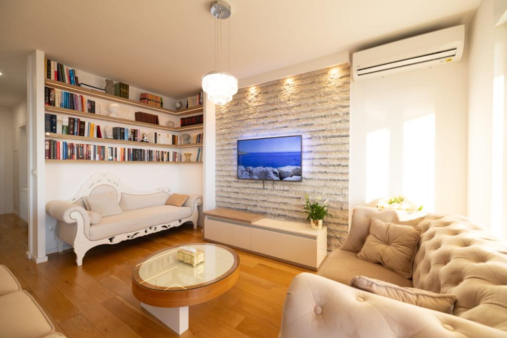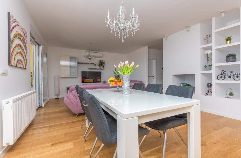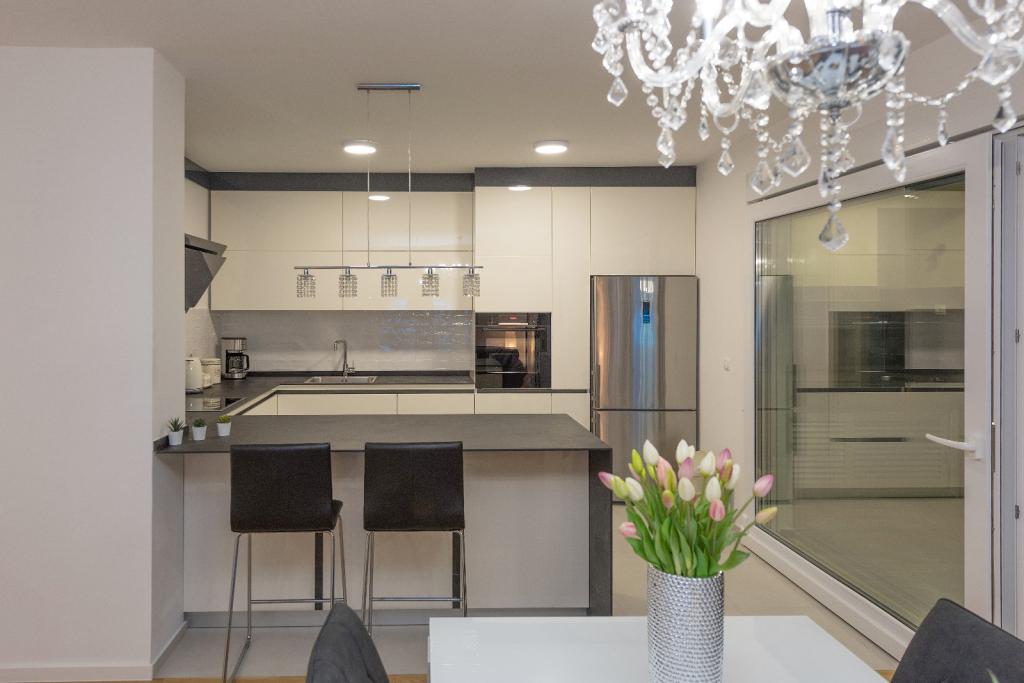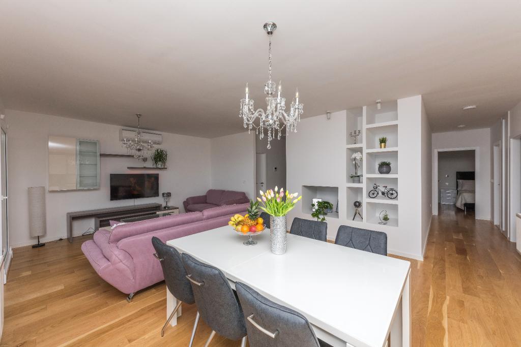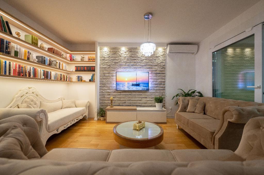 Penthouse Jure in Penthouse Nikola v Makarski sta luksuzna in prostorna apartmaja velikosti 135 m², idealna za udobno in sproščujoče bivanje. Vsak apartma ima tri elegantno opremljene spalnice, dve moderno opremljeni kopalnici, garažo in veliko teraso s spektakularnim razgledom na morje in mesto, idealno za uživanje in sprostitev. Nahajata se v mirnem predelu, 2 km od centra mesta in 1 km od morja, kar zagotavlja idealno kombinacijo zasebnosti in bližine vseh ugodnosti.
