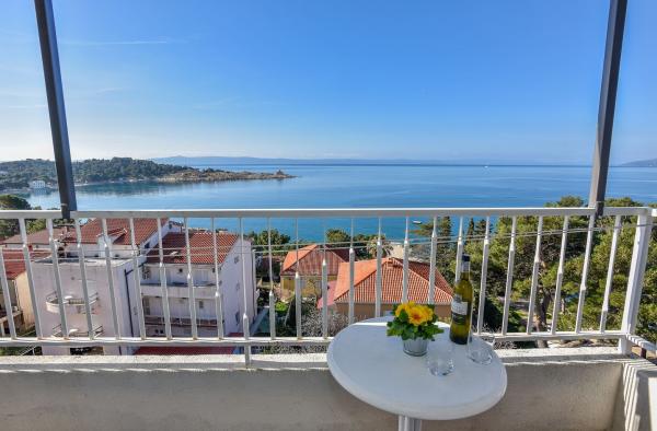 Apartma s pogledom na morje, očarljivo stanovanje v bližini plaže - To čudovito stanovanje je odlično izhodišče za vse dejavnosti s strateško lokacijo v Makarski. Zaradi priročne lokacije med bivanjem ne boste potrebovali avtomobila. Očarljiv in moderen apartma se nahaja na glavni plaži v Makarski, le 40 metrov stran. Apartma je primeren za 4 osebe. Ima 1 spalnico z 1 zakonsko posteljo in raztegljiv kavč v dnevni sobi. V ceno apartmaja je vključeno: lastno parkirišče (brezplačno parkirno mesto z klančino pred objektom), neomejen internet, klima, TV, brisače, posteljnina, kuhinja z vsemi potrebnimi pripomočki... Apartma se nahaja tik ob plaži, le koraki te ločijo od nje. Ima najboljši pogled na morje in otoke, saj se nahaja v zgornjem nadstropju stavbe. V isti stavbi je na voljo A2+2 Marija v zgornjem nadstropju s pogledom na morje in studio apartma (za studio apartma tudi brezplačno parkiranje - vendar le 300 metrov od stavbe na plaži).