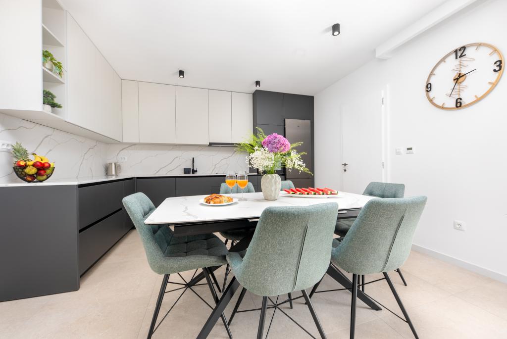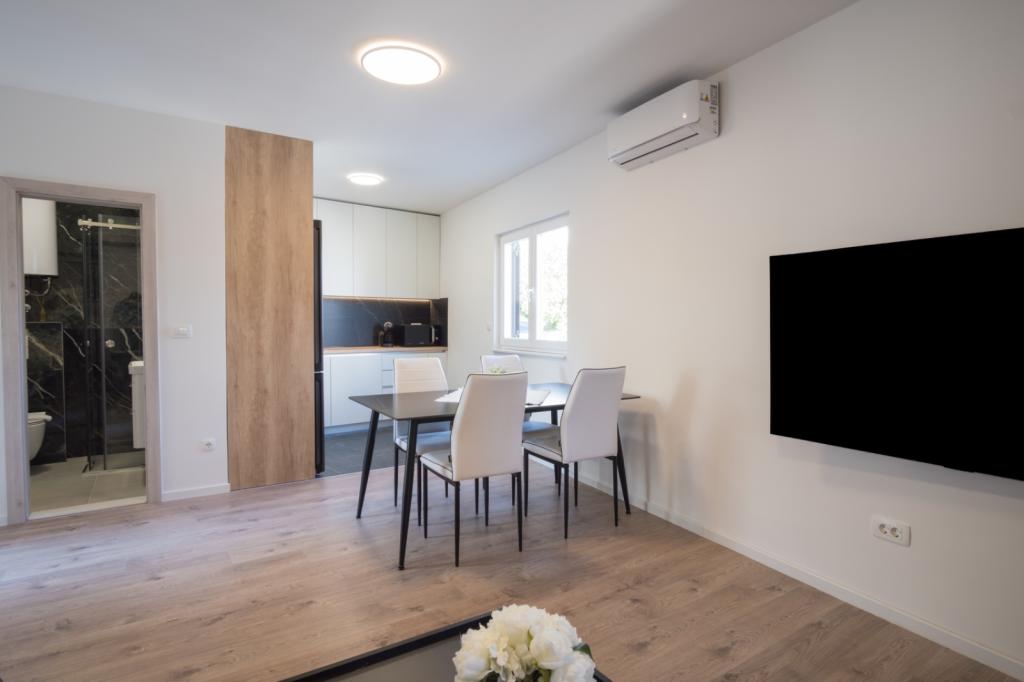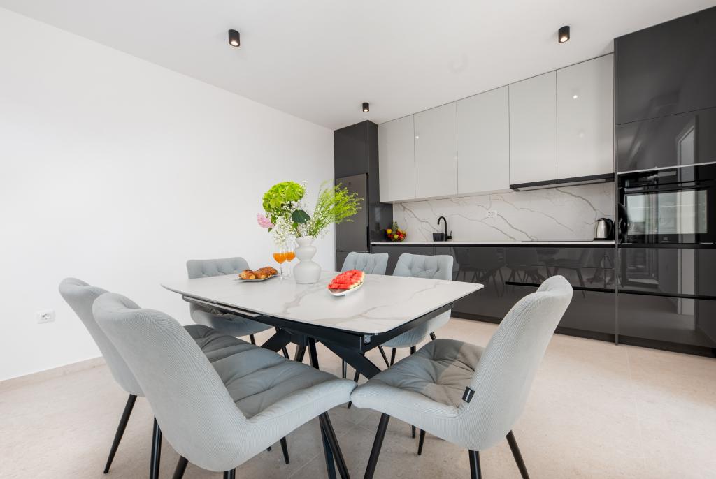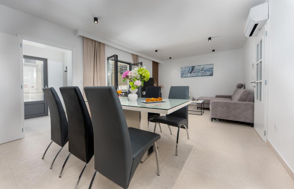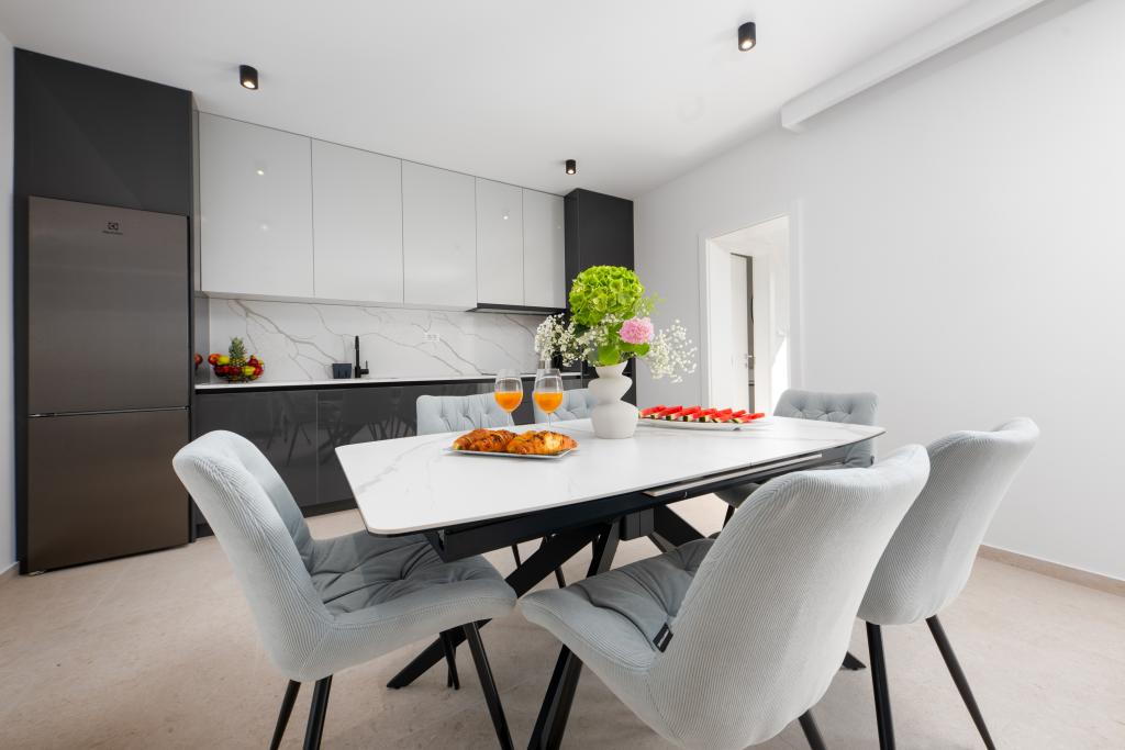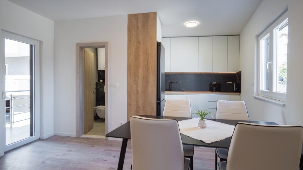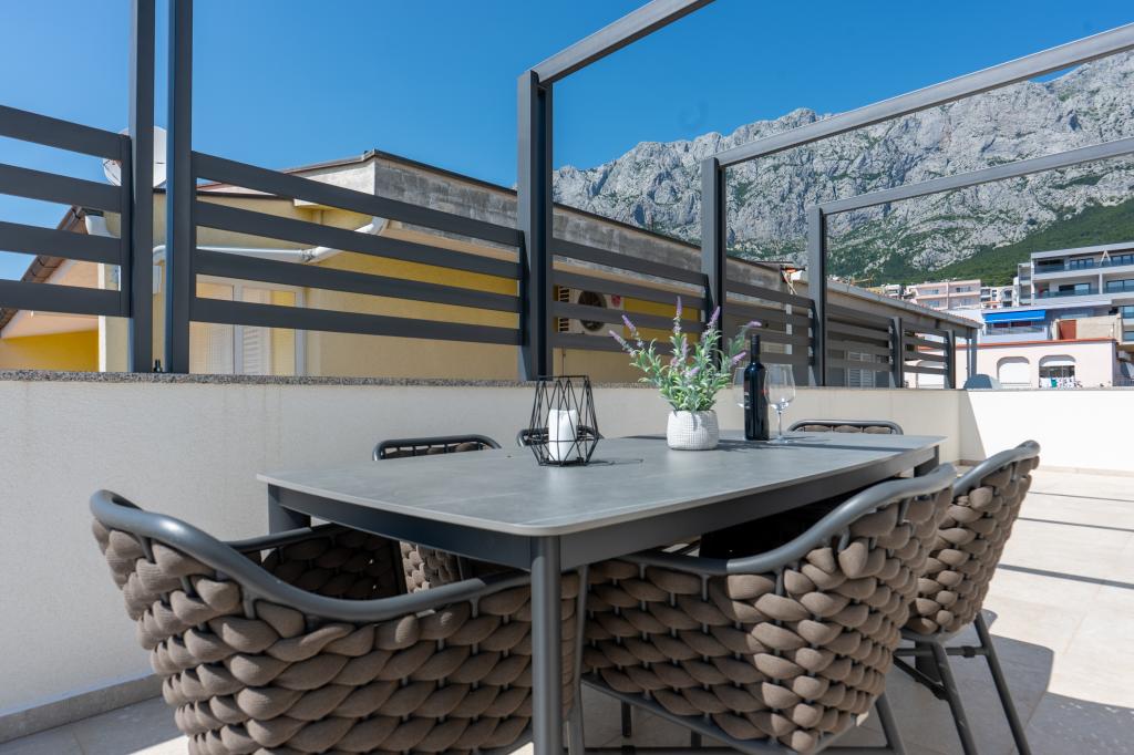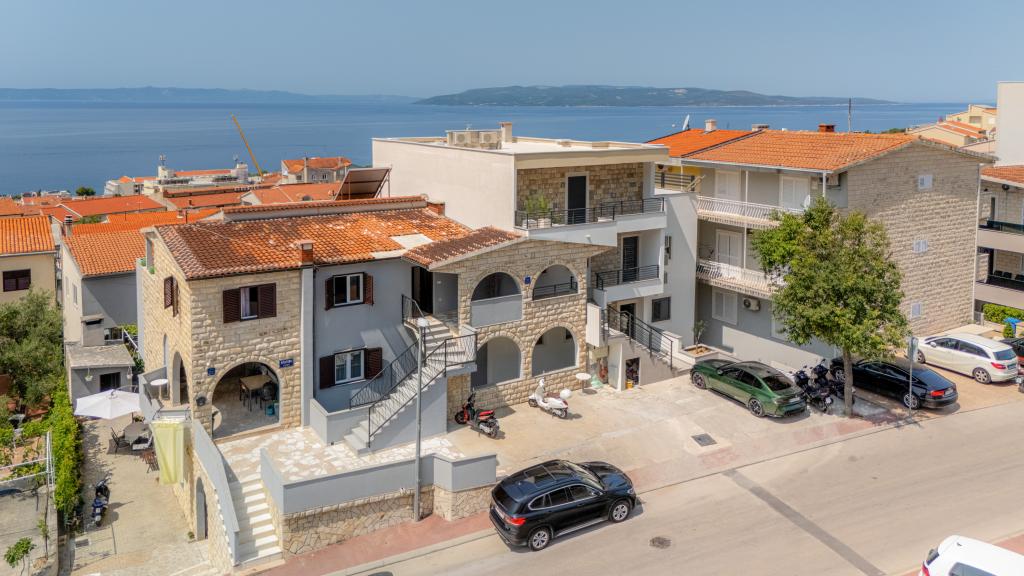 Apartmaji Maslina ponujajo moderno opremljene in prostorne apartmaje v mirnem delu Makarske, idealne za pare, družine in manjše skupine. Namestitev se nahaja na mirni lokaciji, stran od mestnega vrveža, a dovolj blizu, da lahko enostavno raziščete vse, kar Makarska ponuja. Vsi apartmaji so popolnoma opremljeni – kuhinja, klimatska naprava, brezplačen brezžični internet – na voljo pa je tudi zasebno parkirišče. Ponujamo več enot, zato se lahko enostavno prilagodimo vašim potrebam. Če iščete udoben oddih z dobrimi povezavami do plaže in centra, vendar brez hrupa in gneče – so apartmaji Maslina prava izbira za vas!