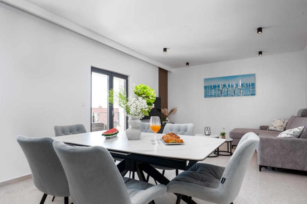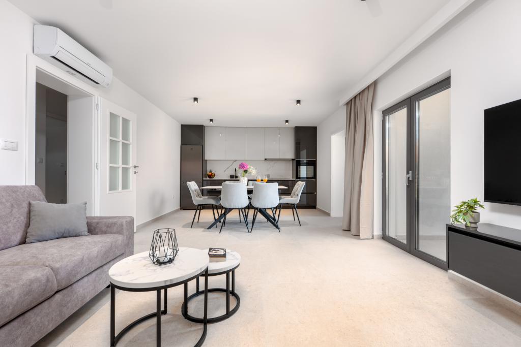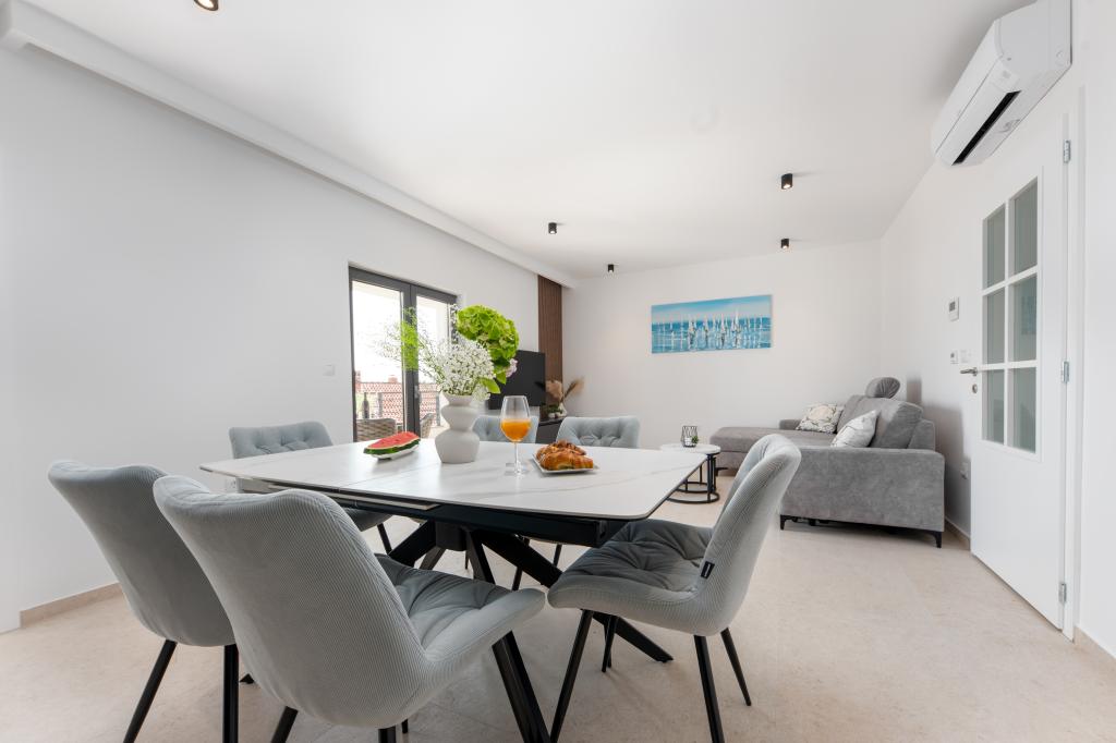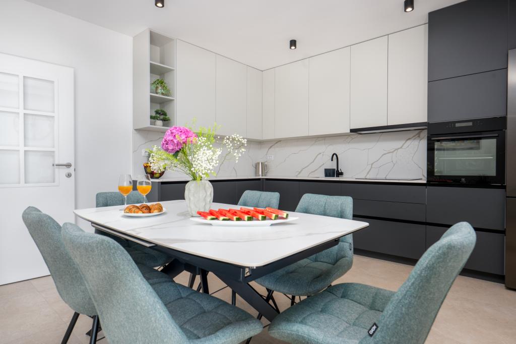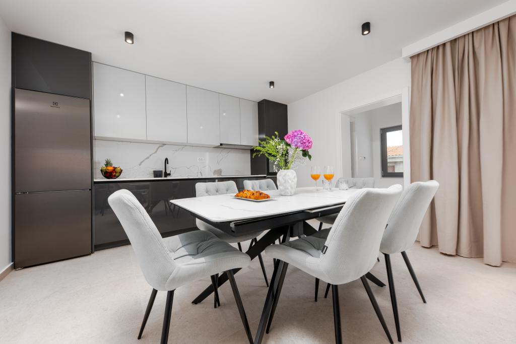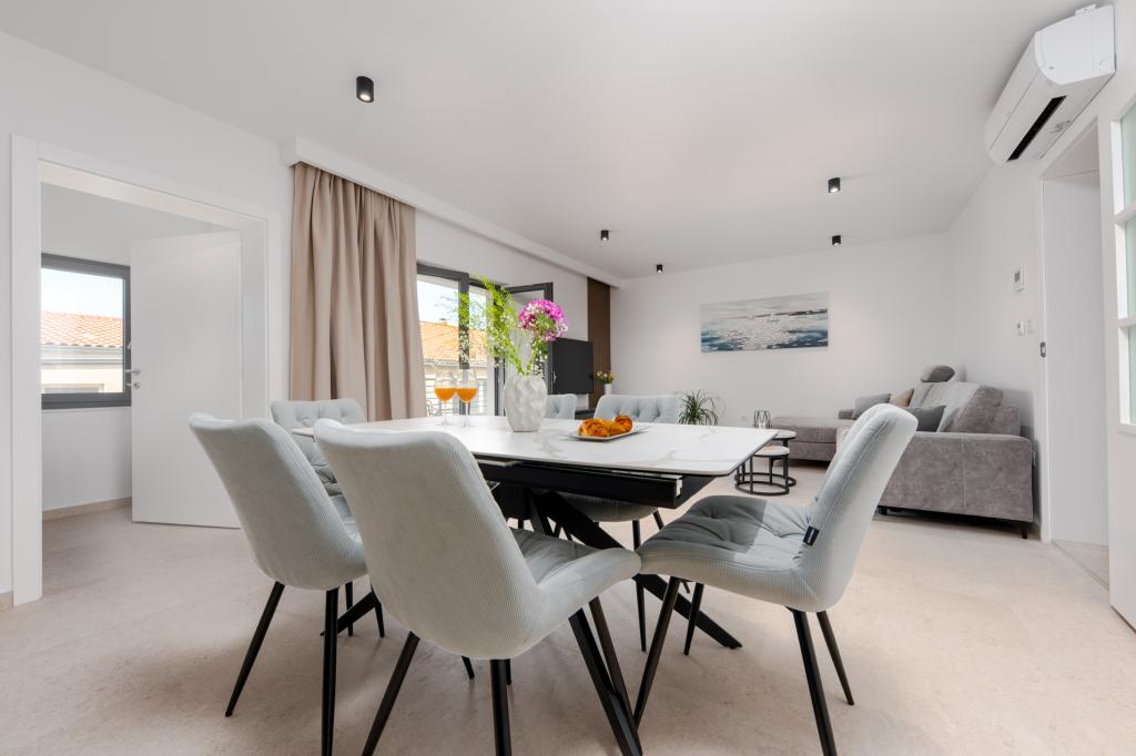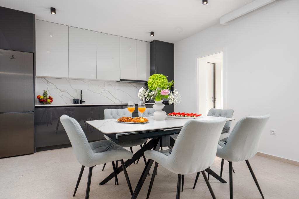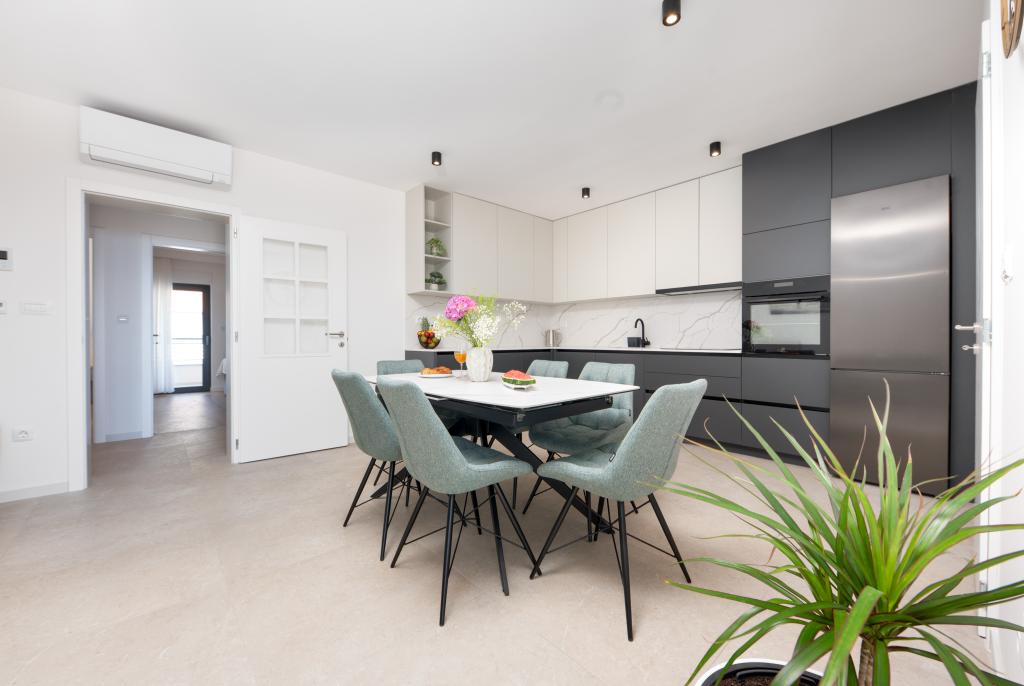 Apartmaji Maslina ponujajo moderno opremljene in prostorne apartmaje v mirnem delu Makarske, idealne za pare, družine in manjše skupine. Namestitev se nahaja na mirni lokaciji, stran od mestnega vrveža, a dovolj blizu, da lahko enostavno raziščete vse, kar Makarska ponuja. Vsi apartmaji so popolnoma opremljeni – kuhinja, klimatska naprava, brezplačen brezžični internet – na voljo pa je tudi zasebno parkirišče. Ponujamo več enot, zato se lahko enostavno prilagodimo vašim potrebam. Če iščete udoben oddih z dobrimi povezavami do plaže in centra, vendar brez hrupa in gneče – so apartmaji Maslina prava izbira za vas!