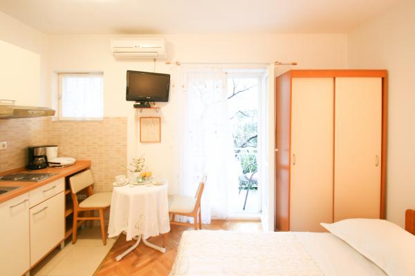 Družinska hiša z apartmaji se nahaja v mirnem stanovanjskem območju Makarske, v bližini peščene plaže in hotela Dalmacije in BIOKOVKA. Oddaljenost od centra mesta je 10 min sprehode ob morju.