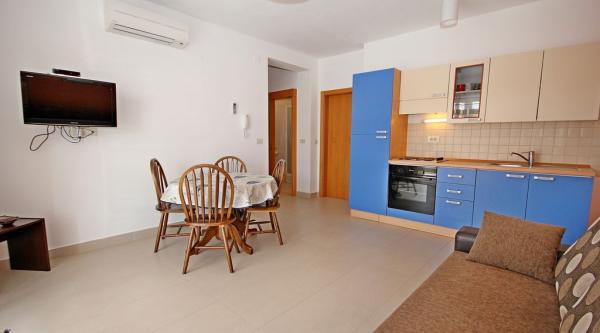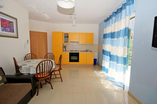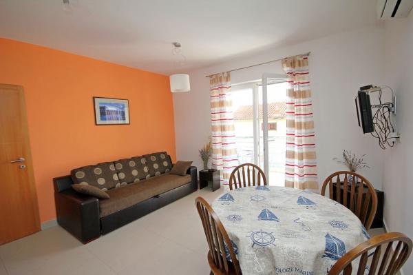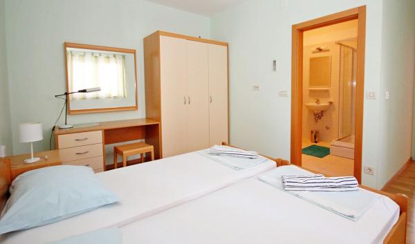 Apartmaji Mikulić se nahajajo v dveh družinskih hišah, obdanih z velikim vrtom in starimi oljkami. Od morja in plaž so oddaljeni 100 m, od centra mesta pa 800 m. V neposredni bližini so supermarket, kavarne, restavracije in potapljaška šola. Za vse naše goste imamo varovano parkirišče. V prvem nadstropju sta dva apartmaja Bava A4+2, ki ju je mogoče povezati.