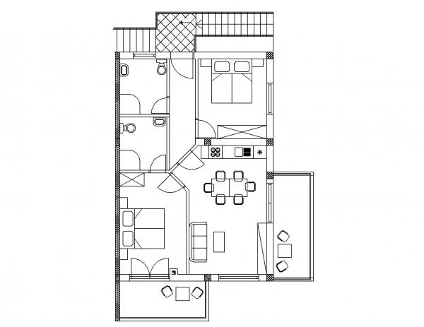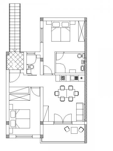 Apartma za štiri osebe, možnost dveh dodatnih ležišč (75 m2)