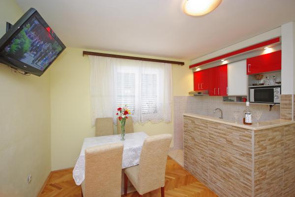 Apartmaji Ribarevic se nahajajo v mirnem delu mesta v bližini centra in plaže. Oddaljenost od centra približno 100 metrov, od morja pa približno 300 metrov. Vsi apartmaji so popolnoma opremljeni za udobno bivanje. Vsi apartmaji imajo balkone in terase s pogledom na morje. Apartma 8 1 ima na terasi infrardečo savno za 2 osebi in jacuzzi za 5 ljudi. Dobrodošli dragi gostje !!
