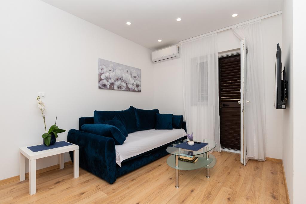 Apartmaji Sani so v celoti in moderno opremljeni. Sobe so dvoposteljne, z zakonsko posteljo in kopalnico. Z veseljem sprejemamo večjo družino ali skupino prijateljev, ki bi uživali v prvi kavi na terasi ali s kozarcem vina ob sončnem zahodu. Na vrtu je žar z vrtnim pohištvom. Restavracije in plaže so oddaljeni 3 do 10 minut hoje od objekta, obstajajo številni turistični objekti, otroški park, restavracije, diskoteke, športni center. Če to ni dovolj, lahko vsak dan obiščete naše edinstvene otoke na izletniških ladjah ali Botanični vrt Biokovske gore, ki se dviga nad mestom. Gostitelji so prijazni in strokovni, pripravljeni, da so vam na voljo kadar koli.