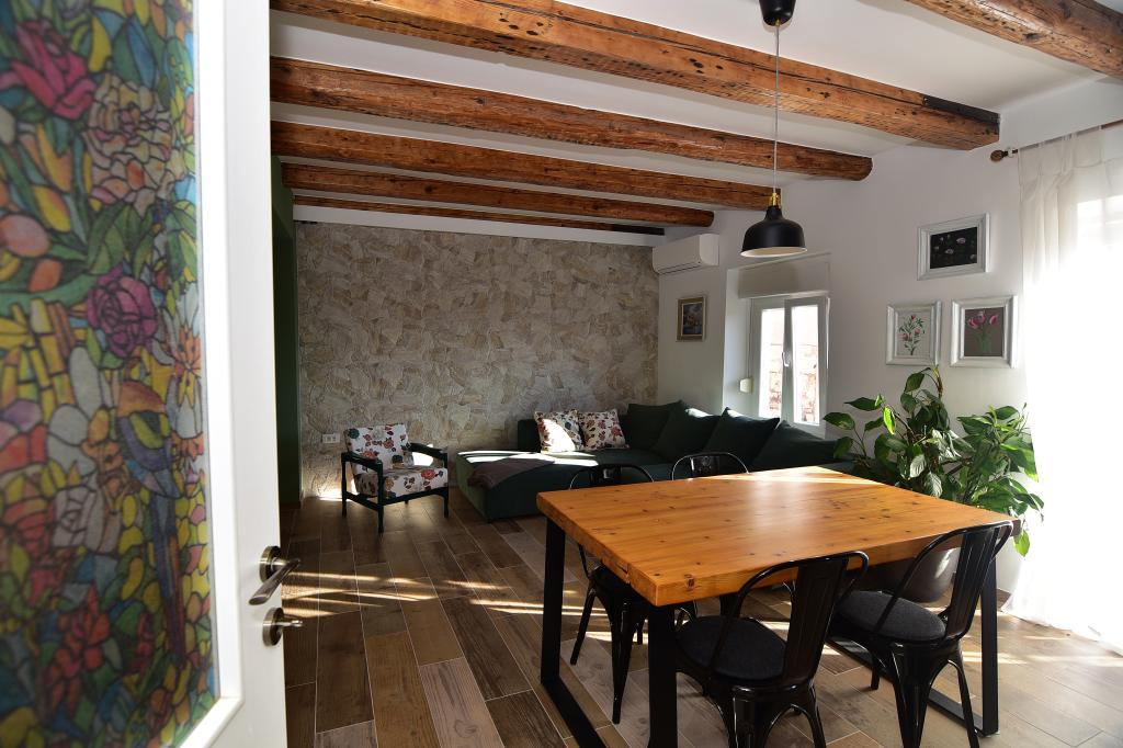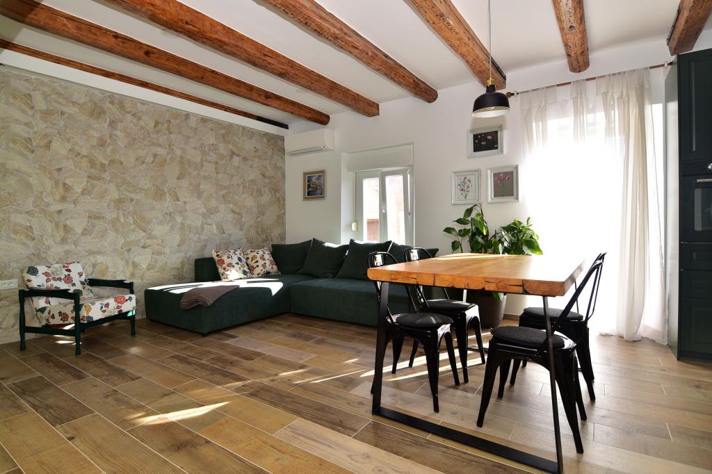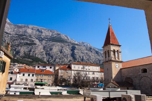 Družinska hiša se nahaja v samem centru Makarske. V neposredni bližini je glavni mestni trg, cerkev, tržnica, trgovine, restavracije. Obala je oddaljena 50 m V hiši sta dva apartmaja, eden v pritličju in drugi v drugem nadstropju hiše. Stanovanje v pritličju ima lasten vhod iz mirne strani ulice, sestavljeno iz dveh dvoposteljnih sob, kuhinje in kopalnice. Vse je moderen odprt prostor, brez vrat na sobah, v dveh nivojih, povezanih z nizom stopnic. Ena soba je v spodnjem nivoju, druga soba, kuhinja in kopalnica pa v zgornjem nivoju. Kuhinja je popolnoma opremljena z vsemi potrebnimi kuhinjskimi pripomočki. Stanovanje je popolnoma prenovljeno in je vse novo. Drugi apartma se nahaja v drugem nadstropju s čudovitim pogledom na rivo in morje. Tudi to stanovanje je bilo popolnoma prenovljeno pred dvema letoma in vse je novo in moderno. Obsega 75m2. Ima dve dvoposteljni sobi, veliko dnevno sobo, kuhinjo, kopalnico in balkon. Vse sobe so klimatizirane
