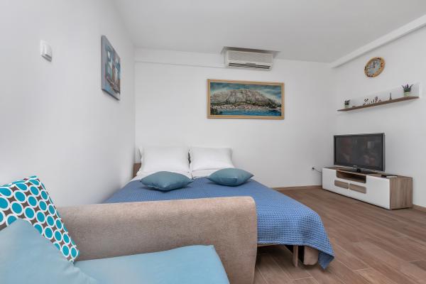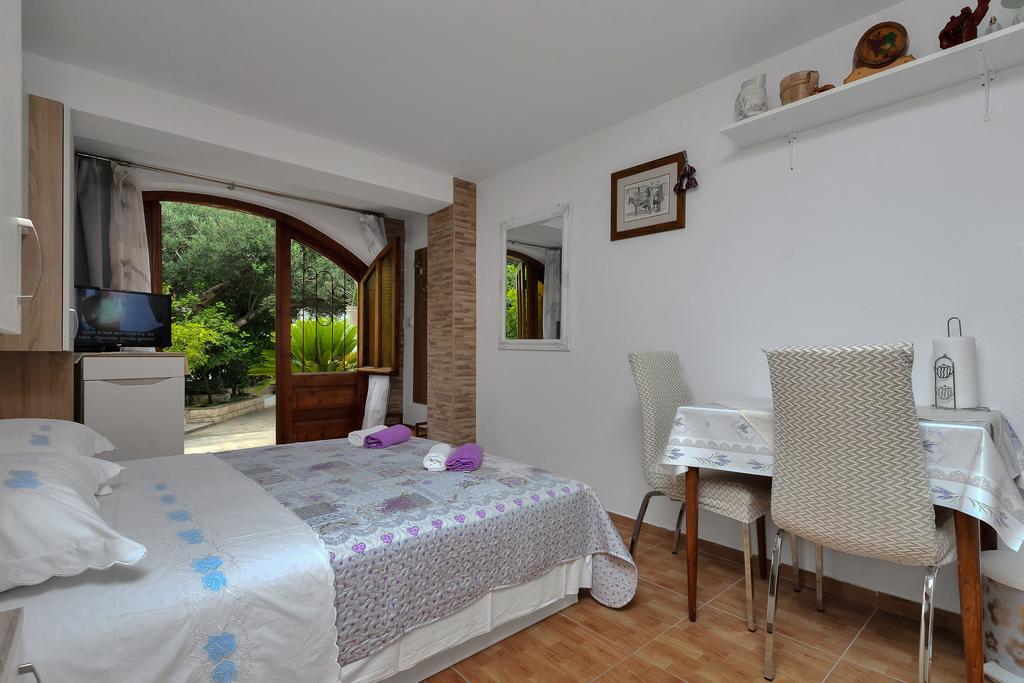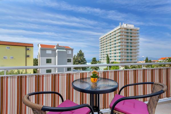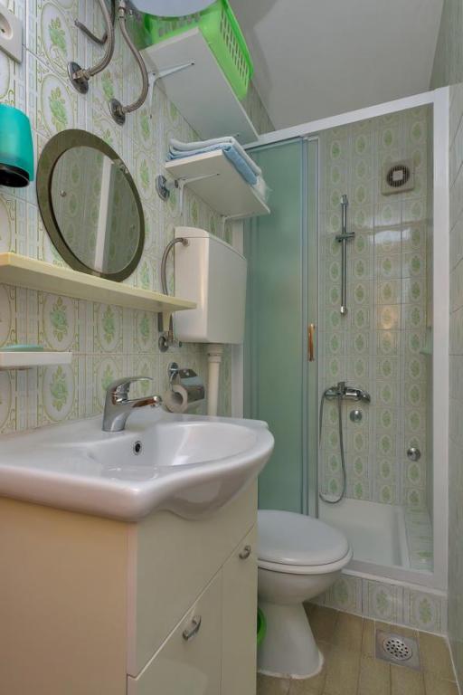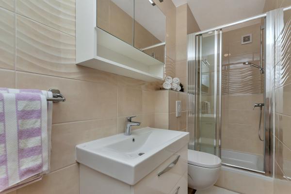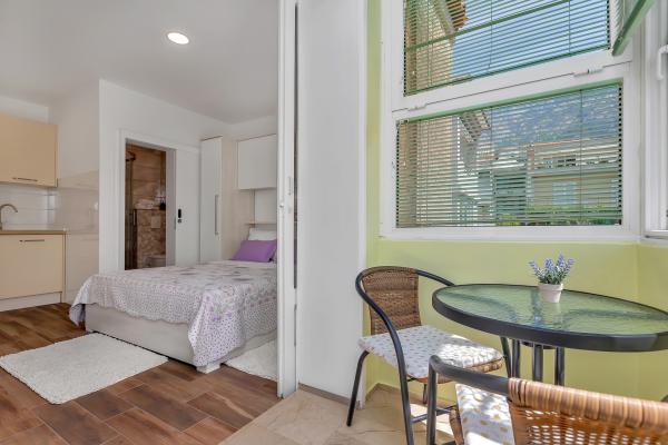 Le minuto hoje do plaže! Prvi apartma je "4+2 apartma" (ID: 58865), za 4 osebe z možnostjo dodatnega ležišča za dve osebi. Skupna površina 85 m2 z dvema spalnicama, veliko dnevno sobo s kuhinjo, dvema kopalnicama in dodatnim straniščem. Apartma ima svoj balkon s pogledom na morje. Drugi je v istem nadstropju Studio "Up!" (ID: 58866) za dve osebi z zasebno teraso za dve osebi. Tretji "3+2 apartma" (ID: 63762) velikosti 65 m2 ponuja namestitev v pritličju za do 5 oseb, četrti Studio "Olive Tree" (ID: 65589) za dve osebi pa prav tako v pritličju hiše.