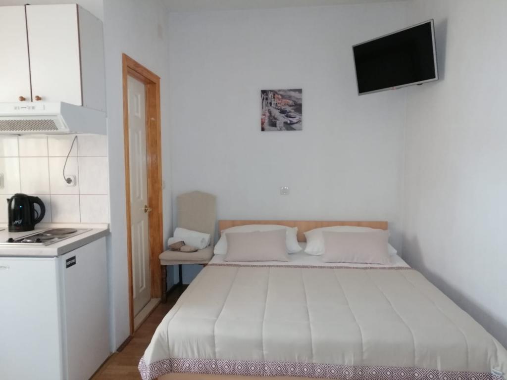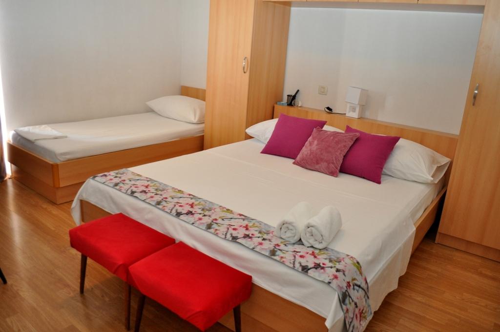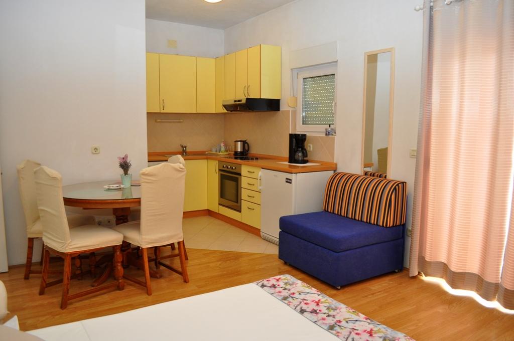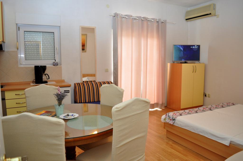 Apartmaji Veselko se nahajajo v mirnem delu Makarske, na območju Zelenka. V drugem nadstropju družinske hiše imamo 4 namestitvene enote (2 južni z balkonom in pogledom na morje, 1 severna z balkonom in pogledom na gore ter 1 severna s teraso in pogledom na goro Biokovo in delno na morje). Vse je popolnoma opremljeno: zakonske postelje (+dodatna 200x90 cm), mini kuhinja, kopalnica, klimatska naprava, pametna TV + satelitska TV, internet. Brezplačno parkirišče za vse goste, ki se nahaja za hišo. Le 8 minut do plaže in 15-20 minut hoje do centra.