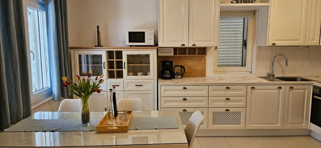 Vila Branka je očarljiva hiša s petimi ločenimi namestitvenimi enotami, idealna za sproščujoče počitnice v naravi. Obdana z zelenjem in umeščena na edinstveni lokaciji s pogledom na Jadransko morje na eni strani in veličastno goro Biokovo na drugi. Nahaja se v izjemno mirnem delu Makarske riviere, na rahlem hribu, stran od turističnih množic in hrupa - idealna za popolno sprostitev in zasebnost. Hkrati je vila oddaljena le 2 minuti vožnje od plaže in 5 minut vožnje od središča Makarske, slikovitega turističnega mesta z bogato ponudbo objektov, restavracij in čudovitih plaž. Popolna kombinacija miru, narave in bližine vseh pomembnih ugodnosti.