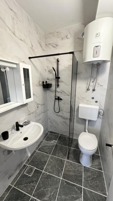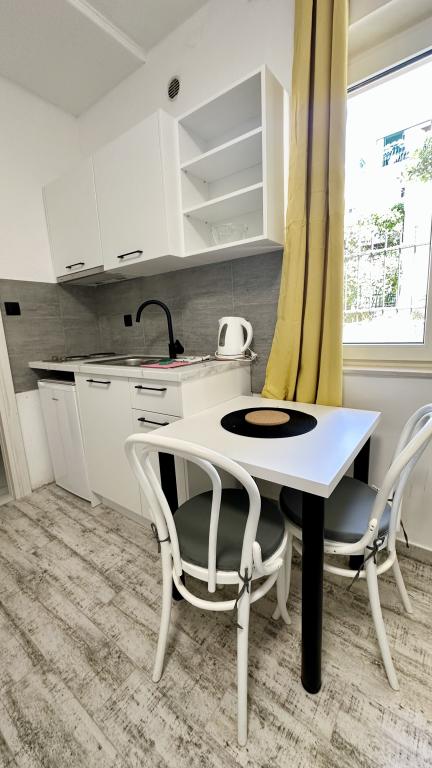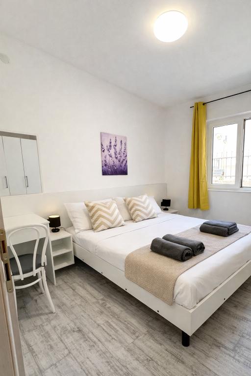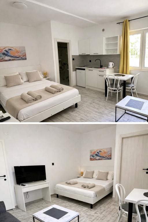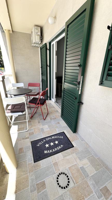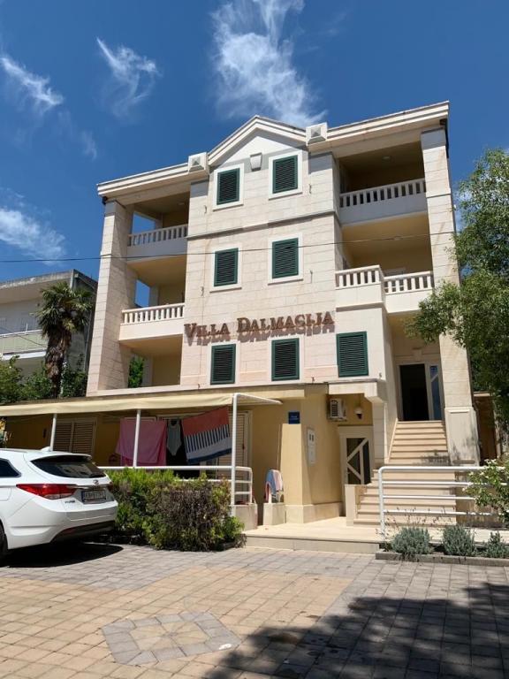 Villa Dalmacija se nahaja v Makarski, le 2 minuti hoje od plaže, z brezplačnim parkirnim mestom. Vsi studii in apartmaji imajo klimatsko napravo, majhno kuhinjo s štedilnikom in osnovno opremo, manjšim hladilnikom, lastno kopalnico in satelitsko TV. Studio 2+1: en studio s francosko posteljo in raztegljivim kavčem za 1 osebo, balkon (garsonjera v prvem nadstropju nima balkona). Studio 3+1: ena spalnica s francosko posteljo in raztegljivim kavčem za 1 do 2 osebi, zaprta mansarda, visoko pritličje. Apartma 2+2: spalnica z zakonsko posteljo in dnevna soba z raztegljivim kavčem za 2 osebi, terasa. Apartmaji se nahajajo v visokem pritličju, v 2. ali 3. nadstropju. Brezžični internet in parkirišče sta brezplačna.