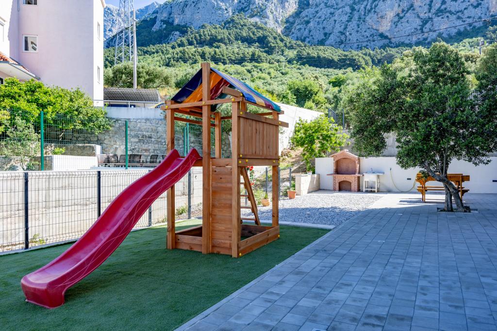 Apartmaji Villa Frane se nahajajo v Makarski, v mirni in urejeni soseski, ki se nahaja na rahlem hribu nad mestom. Od slikovitega mestnega središča so oddaljeni le 10 minut lahkega sprehoda, zaradi česar je lokacija popolnoma uravnotežena - dovolj mirna za sprostitev, a hkrati blizu vseh ugodnosti, ki jih ponuja Makarska. Brezplačno parkiranje v bližini plaže je vključeno v ceno najema! Dobrodošli v modernih in popolnoma opremljenih dvosobnih apartmajih, idealnih za družine, pare ali prijatelje, ki si želijo udobno namestitev v eni najlepših destinacij na Jadranu. Objekt se nahaja približno 1,5 km nad središčem, kar gostom zagotavlja mir, zasebnost in čudovit razgled na okolico. Gostom so na voljo tudi dodatne ugodnosti, ki jim bodo bivanje še bolj prijetno: dvigalo v objektu, zunanje parkirno mesto za vsak apartma, otroško igrišče - idealno za najmlajše, skupni žar za druženje in uživanje na prostem. Popolna izbira za vaše počitnice v Makarski. Brezplačno parkiranje v bližini plaže je vključeno v ceno najema!