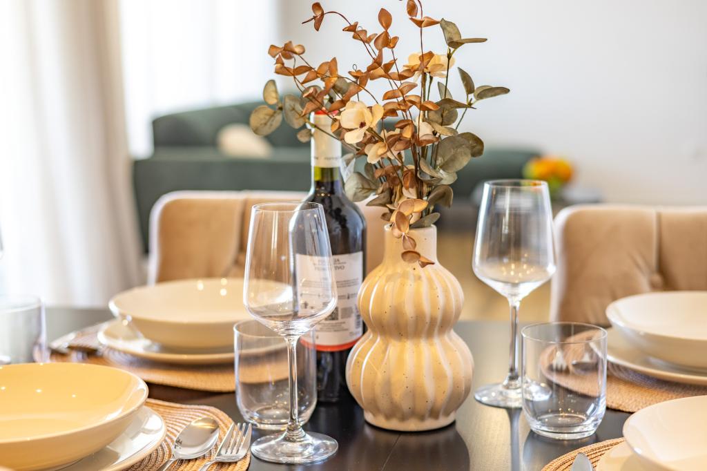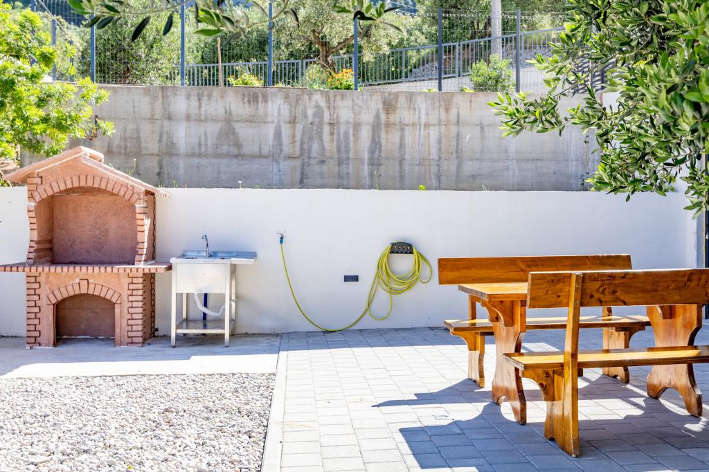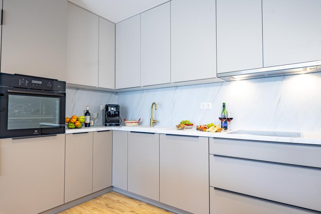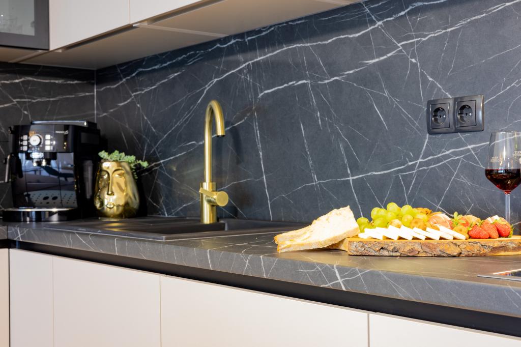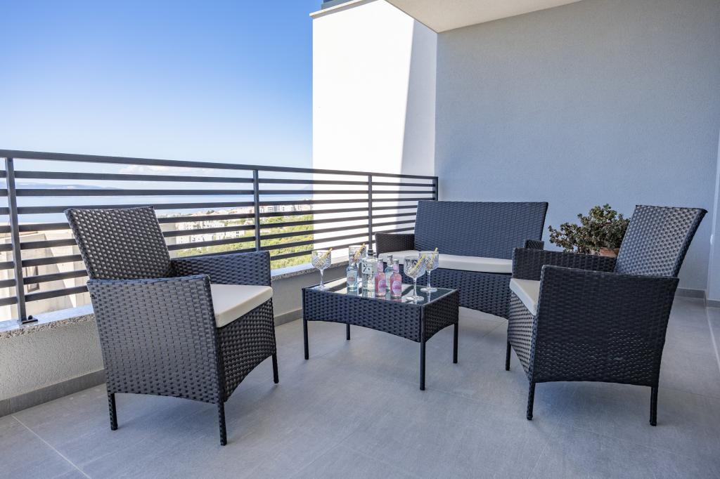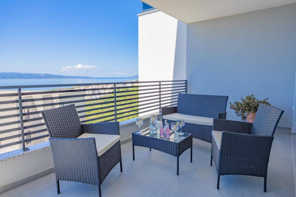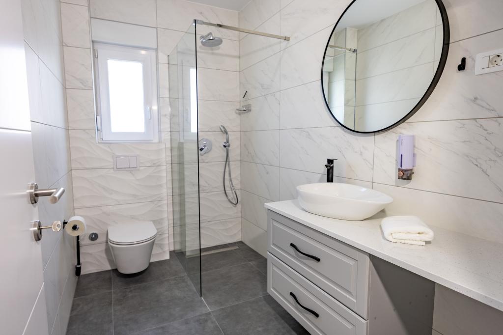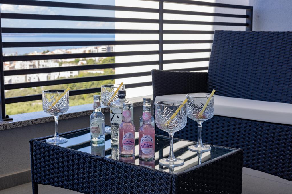 Vsak apartma izžareva sodoben dizajn in prenovljeno notranjost. V prostorni dnevni sobi, okrašeni z okusnim pohištvom in sodobnimi detajli, se boste počutili kot doma. Odprt koncept naravno povezuje dnevno sobo s popolnoma opremljeno kuhinjo, kjer vas čakajo elegantni pulti, kakovostni aparati in ves prostor, ki ga potrebujete za pripravo svojih najljubših obrokov. Dnevni prostor se odpira na prijeten balkon - idealen kraj za jutranjo kavo ali večerno sprostitev ob kozarcu vina in nepozabnem sončnem zahodu nad Jadranom. Vsak apartma ima dve udobni spalnici z zakonskimi posteljami, opremljeni z mehko posteljnino in veliko prostora za shranjevanje, eno moderno kopalnico in dodatno stranišče. Apartmaji so klimatizirani in popolnoma opremljeni: TV/SAT, internet, pralni stroj, pomivalni stroj, aparat za kavo in vse, kar potrebujete za udobno in brezskrbno bivanje. Brezplačno parkiranje v bližini plaže je vključeno v ceno najema!