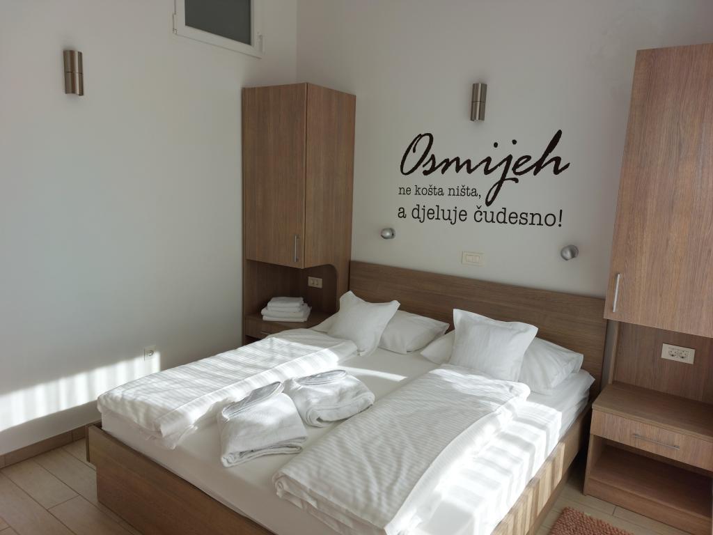 Naši apartmaji so moderno opremljeni in popolnoma opremljeni, da bo vaše bivanje čim bolj udobno in brezskrbno. Vsak apartma vključuje likalnik in likalno desko, sušilec za lase, aparat za filter kavo, grelnik vode in mikrovalovno pečico. Gostom je na voljo tudi kompleten pribor za pripravo in serviranje hrane. Vse namestitvene enote imajo televizijo z ravnim zaslonom, brezplačen brezžični internet, notranje in zunanje prostore za sedenje ter sprostitev. Namestitvene enote so klimatizirane. Parkirišče je treba rezervirati vnaprej zaradi omejenega števila parkirnih mest v objektu. Ob prihodu vas pričaka sveža posteljnina in brisače, ki se menjajo po dogovoru. Otroška posteljica je na voljo v tem objektu ob predhodni najavi in je brezplačna. V objektu je skupno dvorišče s sedežno garnituro, obdano z mediteranskim rastlinjem - idealen kraj za sprostitev. Objekt se nahaja v mirnem predelu, v drugi vrsti od morja, le 2 minuti hoje do plaže in deset minut lahkega sprehoda do centra.