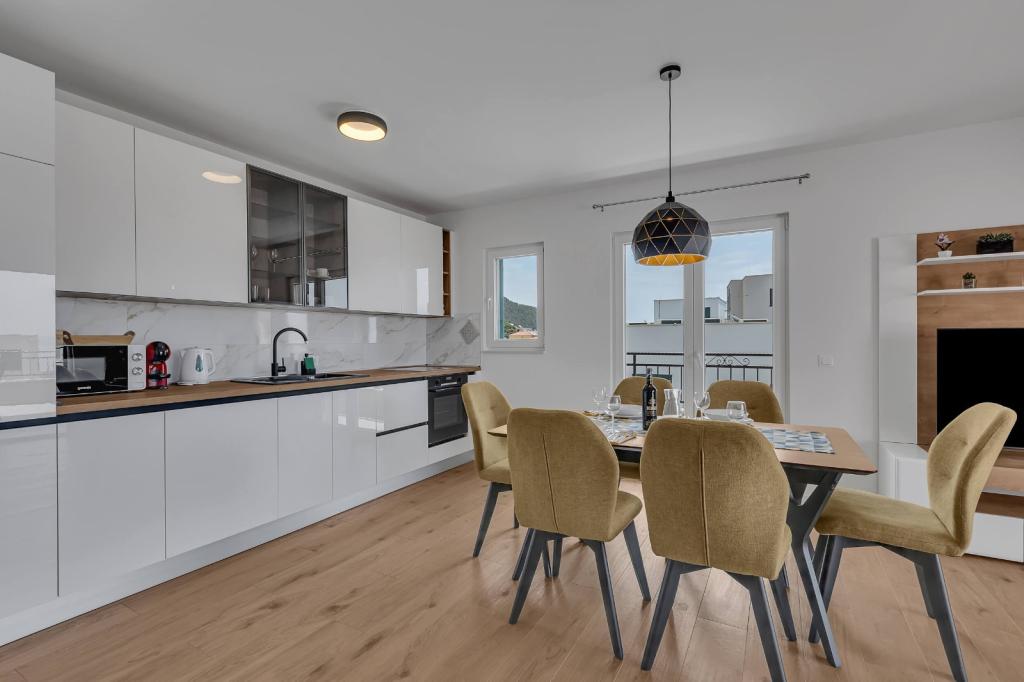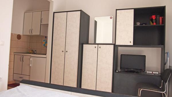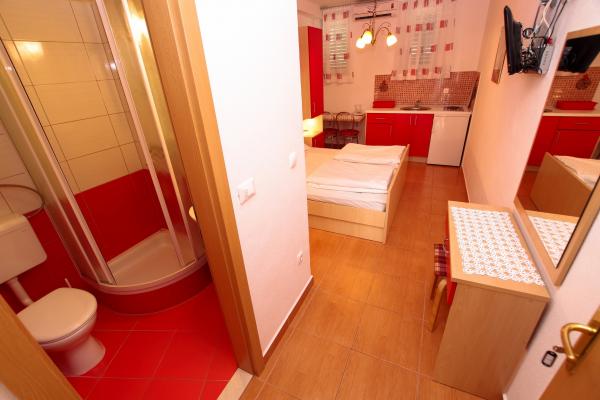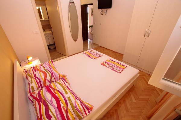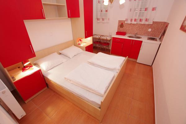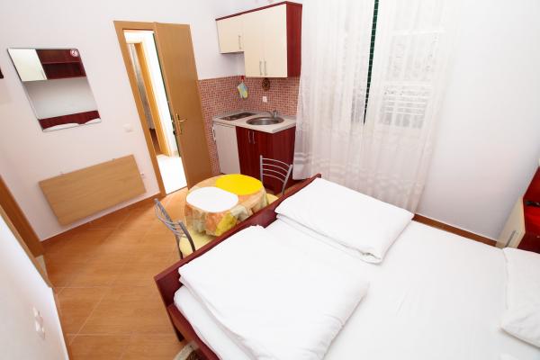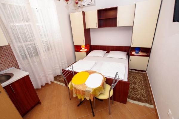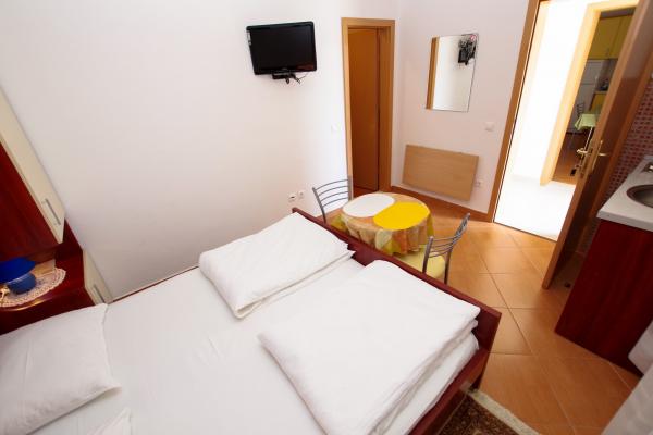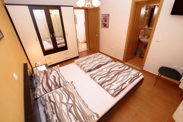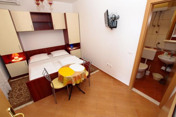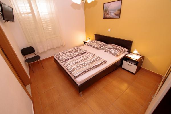 Naše namestitvene zmogljivosti se nahajajo v hiši, kjer živimo. Poleg varovanega parkirišča v hiši smo vsem gostom zagotovili televizorje, klimatsko napravo in dostop do hitrega brezžičnega interneta. Nahajamo se nekaj minut hoje od centra in morja, medtem ko smo od plaže oddaljeni približno 10 minut hoje. V pritličju so trije studio apartmaji za dve osebi in eden za tri osebe, v prvem nadstropju pa sta dva studio apartmaja za dve osebi. V drugem nadstropju se nahaja novozgrajen apartma za štiri osebe, kategoriziran s štirimi zvezdicami, s površino več kot 90 kvadratnih metrov in balkonom več kot 50 kvadratnih metrov. Apartma je sestavljen iz dveh spalnic, dveh kopalnic, velike dnevne sobe s kuhinjo in dveh balkonov. Je popolnoma na novo opremljen z vsemi potrebnimi aparati, kot so pralni in pomivalni stroj, mikrovalovna pečica, hladilnik, tri klimatske naprave itd. To stanovanje se oddaja od 25. 7.