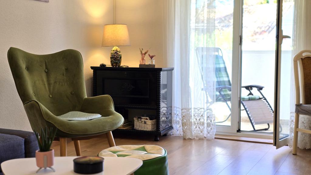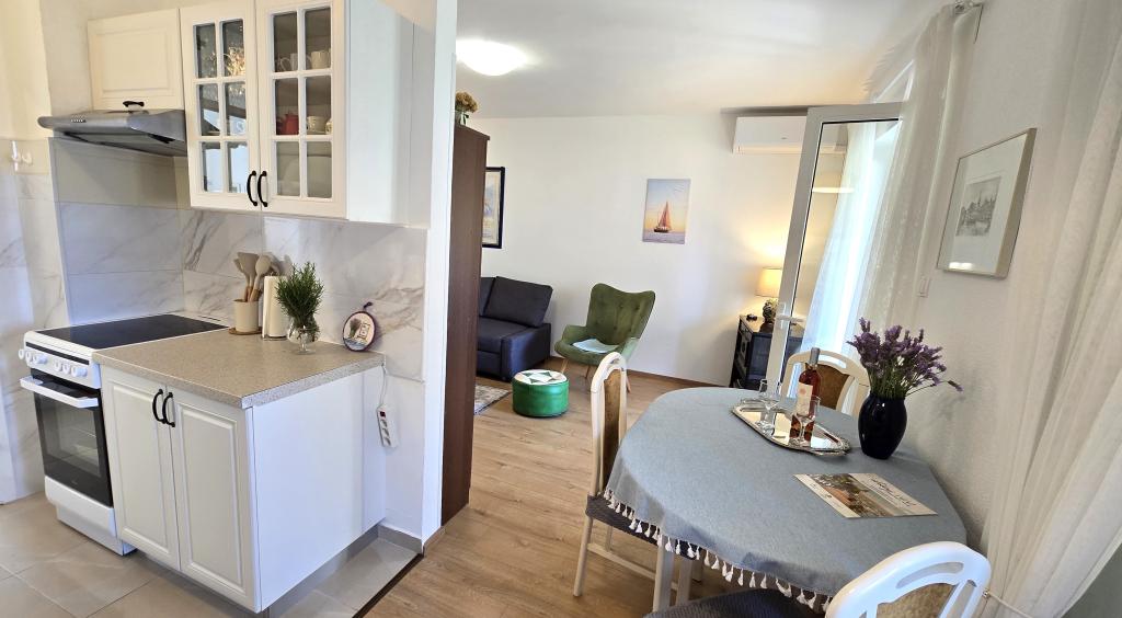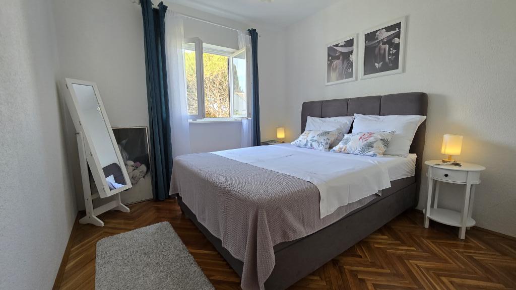 Apartma Blanka 1 je idealen za vaše počitnice, saj lahko sprejme 3 osebe. Ponuja spalnico z zakonsko posteljo, dodatno spalnico za eno osebo, dnevno sobo, jedilnico, kuhinjo in kopalnico. Dodaten prostor za sprostitev in druženje nudi prostorna terasa s pogledom na vrt. Dodatne ugodnosti vključujejo WiFi, klimatsko napravo in zasebno parkirišče, zaradi česar je to stanovanje praktična in udobna izbira za vaše bivanje.