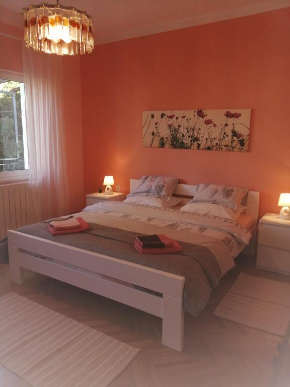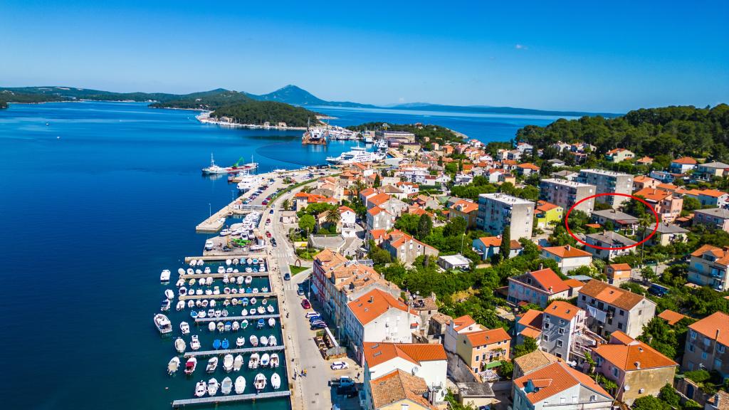 Apartma se nahaja v mirnem delu mesta, blizu plaž in centra mesta. Apartma ima ločen vhod, veliko teraso s pogledom na morje in pristanišče. Stanovanje ima 3 spalnice, dnevno sobo, kuhinjo, 2 kopalnici. Apartma je v celoti opremljen (jedilni pribor in posoda, pomivalni stroj, hladilnik z zamrzovalnikom, toaster, 2 vrsti aparatov za kavo, mikrovalovna pečica, kuhalnik vode, brisače, posteljnina, likalnik, SAT TV, Wi-Fi, pralni stroj, sušilnik za lase, klima). Apartma ima tudi prostor za žar. V zimskih mesecih je stanovanje ogrevano s centralno kurjavo v vseh prostorih. Možnost parkiranja vozil ob vhodu v objekt na javni površini.