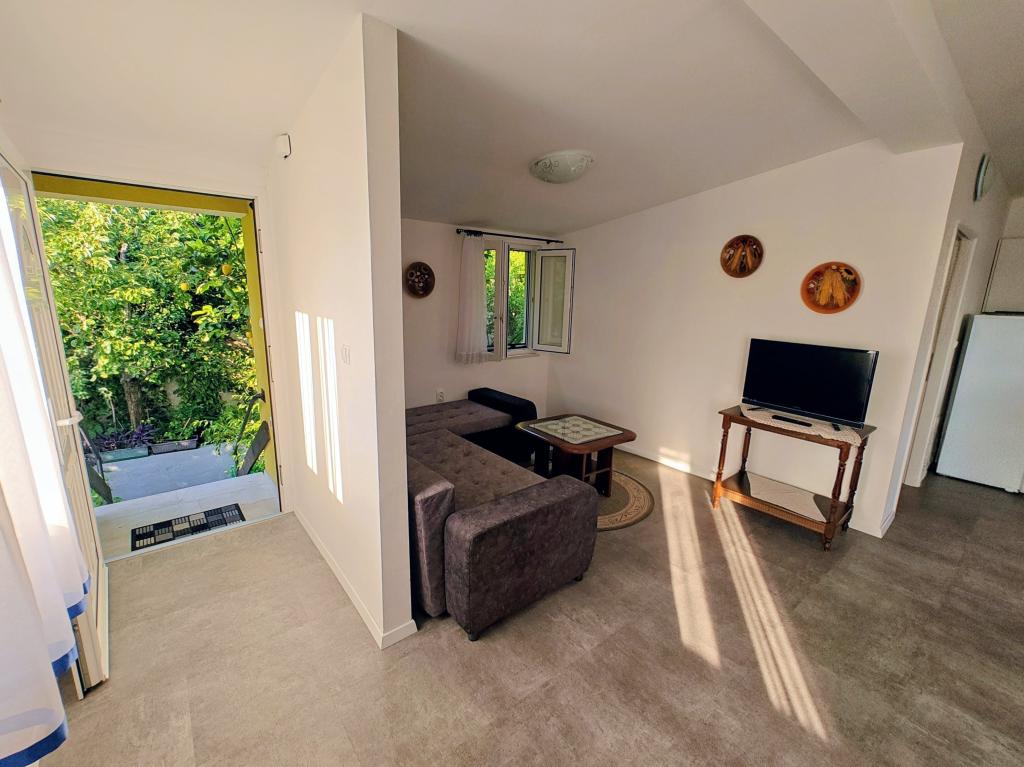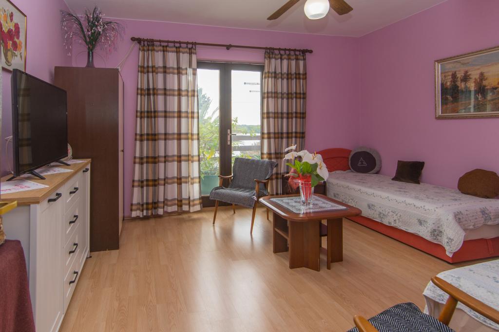 Nahajamo se na območju Poljane, v mirni, malo prometni ulici, 100 metrov od morja in 1 km od centra mesta. Pod hišo je promenada in kolesarska pot, ki vodita vse do mesta. V neposredni bližini je tudi plaža - delno prodnata in delno betonirana, brez sence. Hiša je sestavljena iz 3 popolnoma opremljenih apartmajev s terasami s pogledom na morje in zelene vrtove. Vsak apartma ima ločen vhod, klimo, Wi-Fi, LCD TV, pralni stroj...