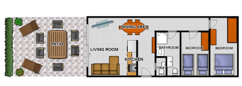 Apartma za tri osebe, možnost dveh dodatnih ležišč (70 m2)